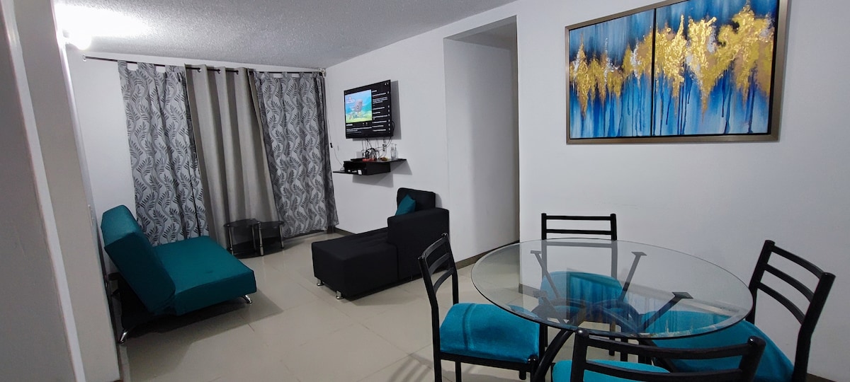 Relájate con toda la familia, tu pareja o tus amigos en este tranquilo apartamento con muchas comodidades. Al frente de uno de los centros comerciales más modernos de Medellín, Mayorca. Con acceso al metro y al frente de la avenida Las vegas. Fácil acceso a restaurantes, bancos, cajeros automáticos, supermercado y zonas de rumba al sur de la ciudad.