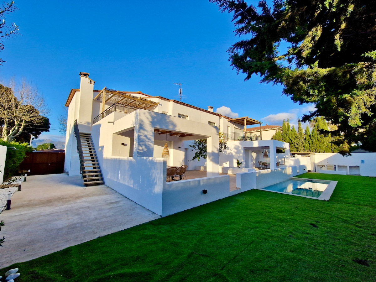 Récemment rénovée, venez découvrir la "maison de la plage" à la décoration bohème. Garez vous et profitez de son emplacement idyllique : la plage, les commerces, le marché à moins de 5 min à pieds. Détendez vous dans sa piscine chauffée avec plage et de son coin repas ombragé Cuisine équipée, barbecue, 3 salles de bain, climatisation dans toute les pièces Pour votre confort : -2 suites avec lit King size (dont 1 en rez-de-chaussée) -1 chambre avec lit king size -1 dortoir de 4 lits enfants