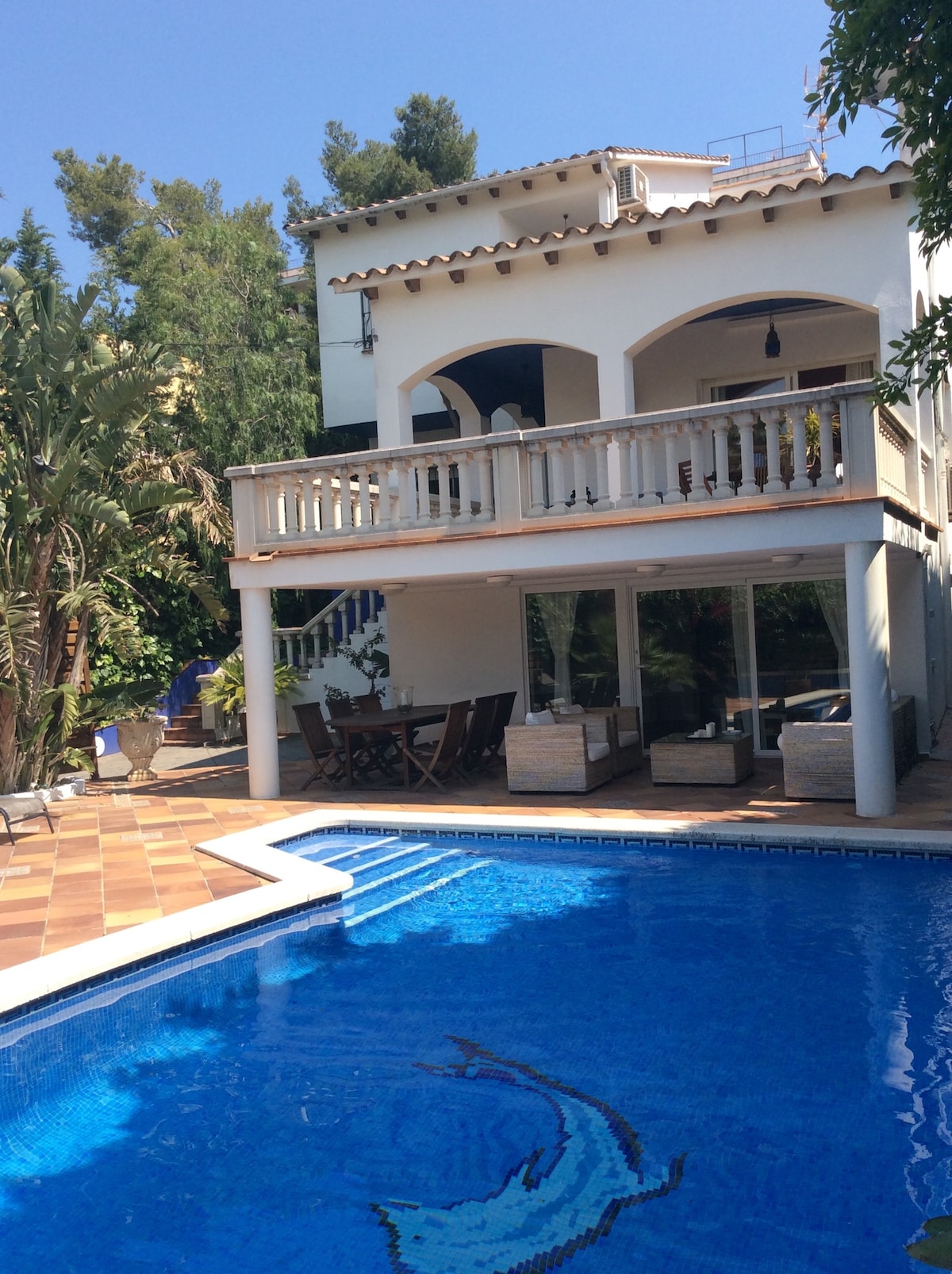 Welcome to our 500 m2 villa with a 1.500 m2 garden and swimming pool, surrounded by nature. Peaceful stay in the mountains, with privileged views to the Mediterranean Sea, located in a Natural Park, 15 minutes from Barcelona. Ideal for families, for company team building and retreats and for lovers of the outdoors, sports and nature. Our property lays beside hiking and biking trails and there are plenty of spots to explore with unforgettable sunsets and sunrises over Barcelona and the Sea.
