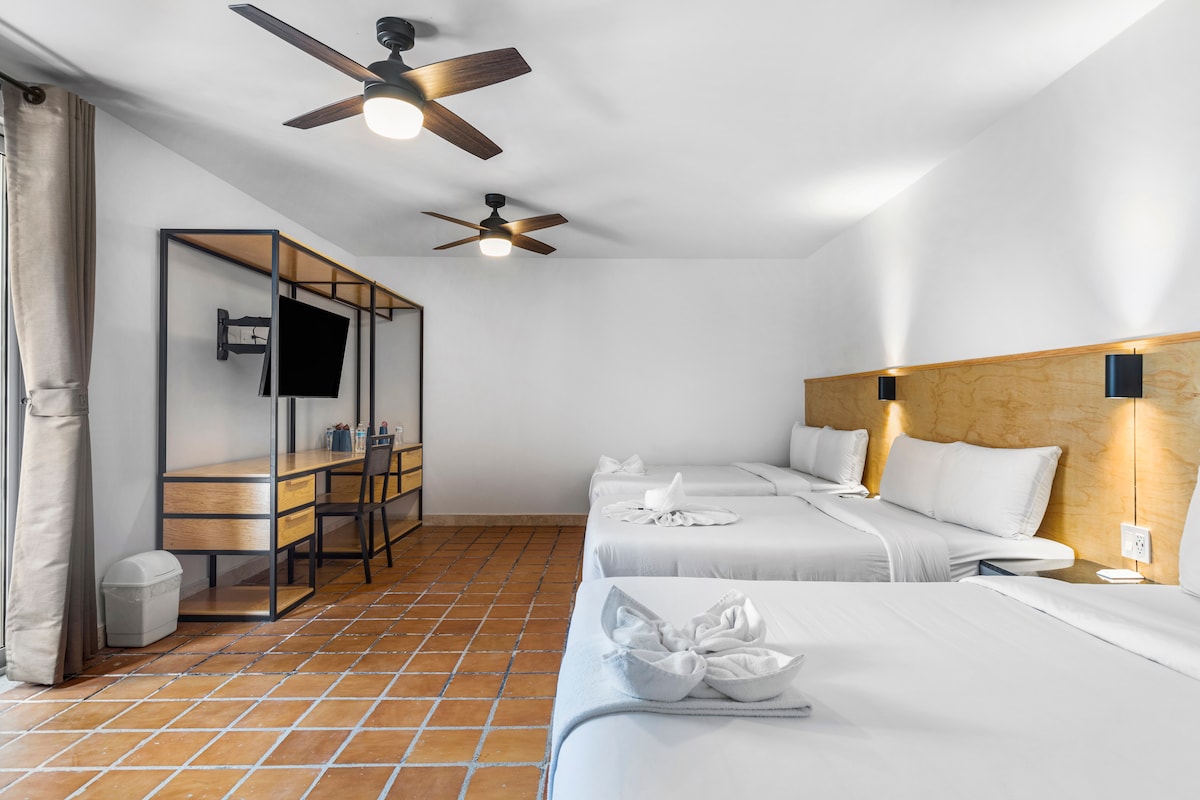 La suite esta equipada para brindar el mayor confort. Descanse en su cama con colchón memory foam mientras ve una película en la smart TV, WIFI alta velocidad. Disfrute de un buen baño en una regadera con acabados de alta calidad. Trabaje sin preocupaciones en el escritorio contamos con wifi de alta velocidad.