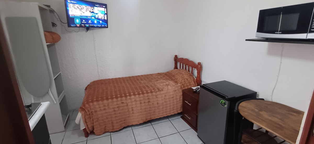 Comfortable and functional loft in Querétaro’s Historic Center, just a 5-minute walk from Plaza de Armas. It features a comfortable double bed, a fully equipped kitchenette, and a full bathroom, ideal for short or long stays. High-speed Wi-Fi (300 Mbps) is available, perfect for home office and remote work. Cafés, restaurants, markets, laundromats, gyms, transportation, and other services are just a few blocks away. Enjoy the city on foot from a quiet, prime location.