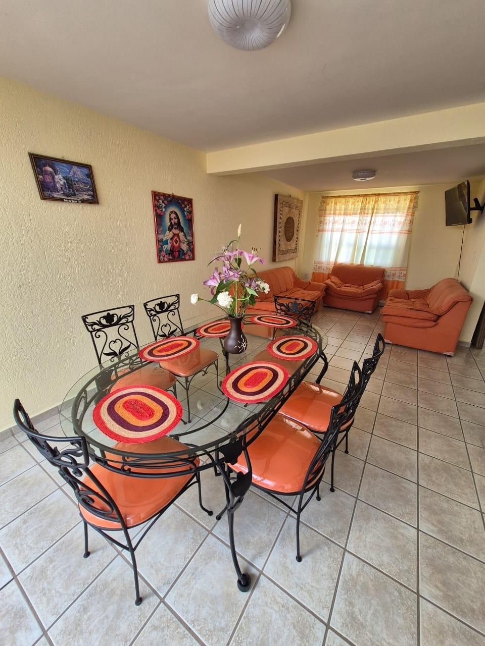 Disfruta de una estancia confortable en nuestra casa con un toque de diseño mexicano. Ideal para familias, parejas o viajeros que buscan un lugar tranquilo y bien ubicado. 3 Habitaciones: 1 Cama King size,2 Camas matrimoniales. Áreas Comunes: Sala-comedor y patio trasero. 2 Baños Completos Comodidades Destacadas Cocina equipada Wifi. Estacionamiento. Ventiladores de techo. Tv. Ubicación Estamos convenientemente ubicados en misión Santa Sofía. A solo 15 minutos del centro histórico en auto.