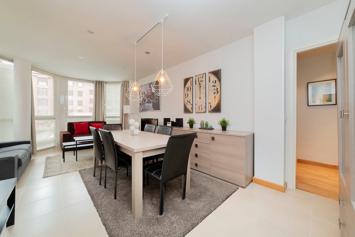 Encantado de recibiros en este apartamento. Se encuentra a 5 minutos del Parque del Retiro en una de las mejoras zonas de Madrid. El edificio es de reciente construcción con piscina, squash y gimnasio. Sin duda pasaréis unos días inolvidables.