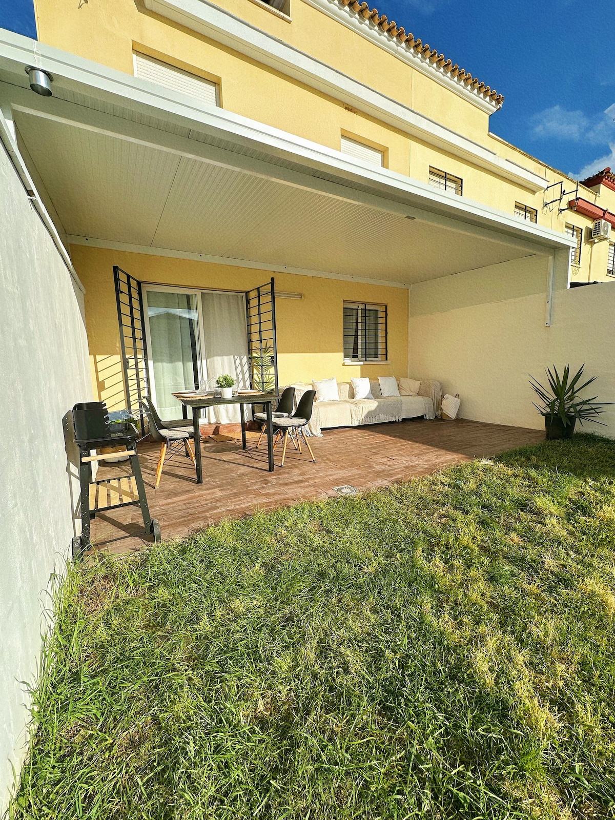Chalet en Matalascañas para hasta 6 personas. Reformada en abril 2023 La casa consta de 3 dormitorios, 1 de ellos con 1 cama de matrimonio de 1.50 cm y otros 2 dormitorios con 2 camas de 90 cm 2 baños, Salón comedor, cocina americana totalmente amueblada y patio que rodea la casa Dos estancias en el patio una delante y otra detrás Chalet entre el hotel Ohtels Carabela Beach- hotel Flamero Dispone de ropa de cama y toallas Dispone de gran patio 10 min de la playa caminado No mas de 6 personas