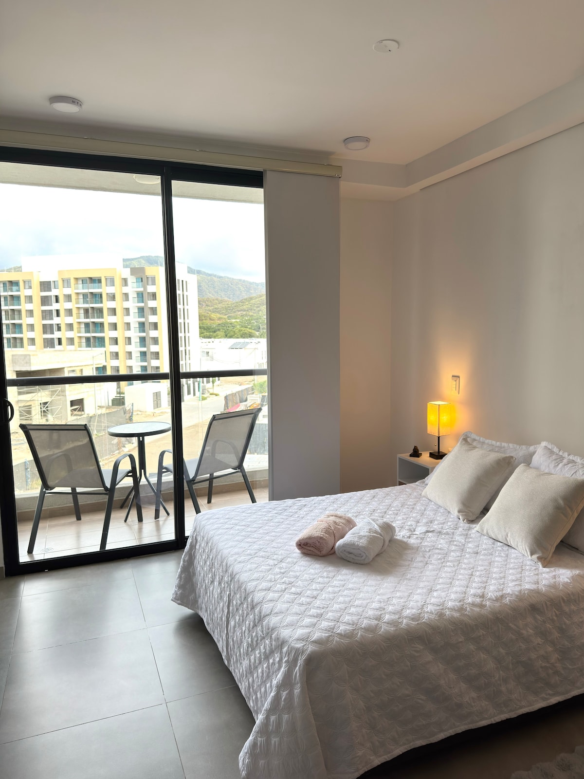 A *fully furnished modern suite* in Santa Marta just a short walk from Salguero Beach & close to El Rodadero, one of the city's most popular tourist spots. ✨ Highlights: Rooftop pool, Jacuzzis, Sauna, Turkish Bath, Game room, & Gym. MORE ⬇️. The building has free parking for visitors, subject to availability. The suite has a mountain view. Whether you're looking to unwind or explore, this suite is the perfect base for your time in Santa Marta.