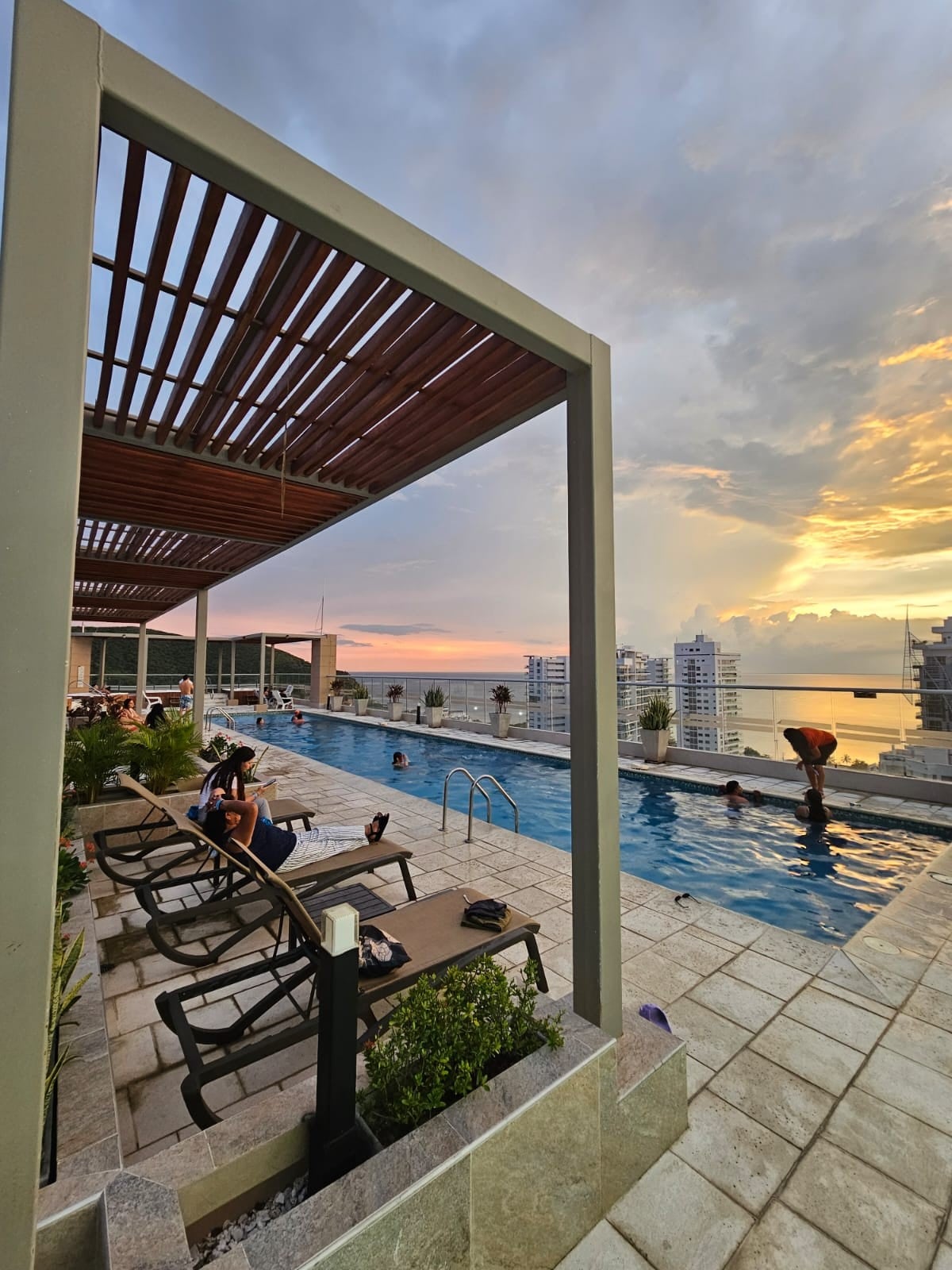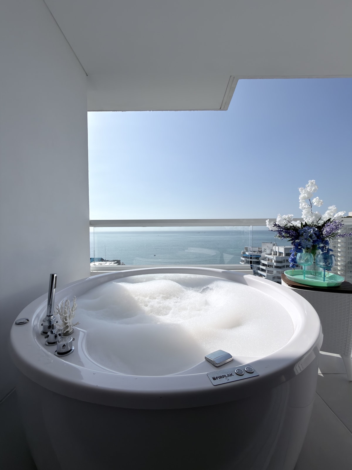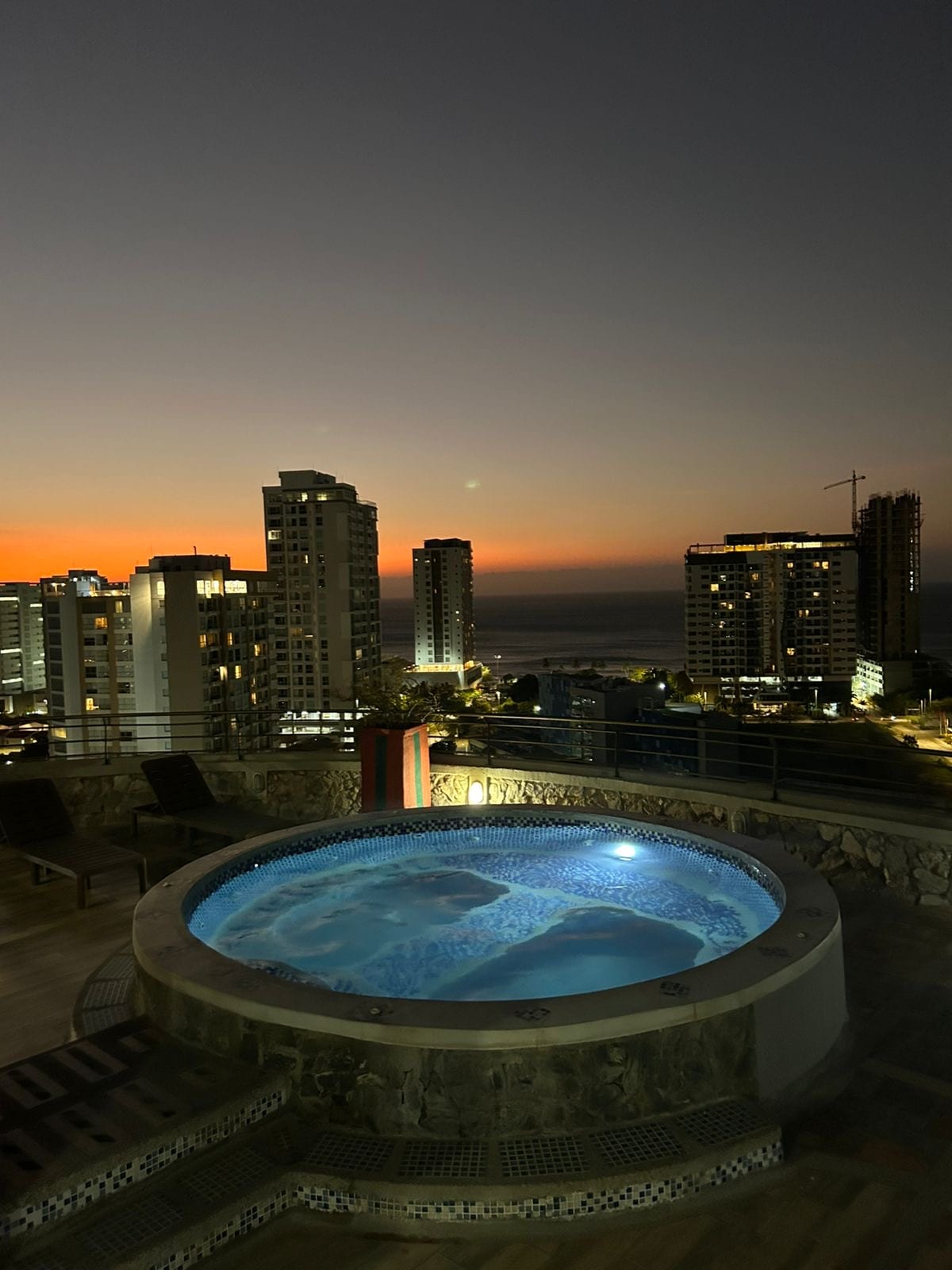 Enjoy a modern apartment with ocean view, just two blocks from Rodadero Beach. Relax in the panoramic pool, heated jacuzzi, sauna, or Turkish bath. The apartment features a fully equipped kitchen, Wi-Fi, cable TV, air conditioning, and covered parking (subject to availability). Modern building with a rooftop restaurant, two elevators, 24/7 security, and comfortable spaces to relax and enjoy Santa Marta.