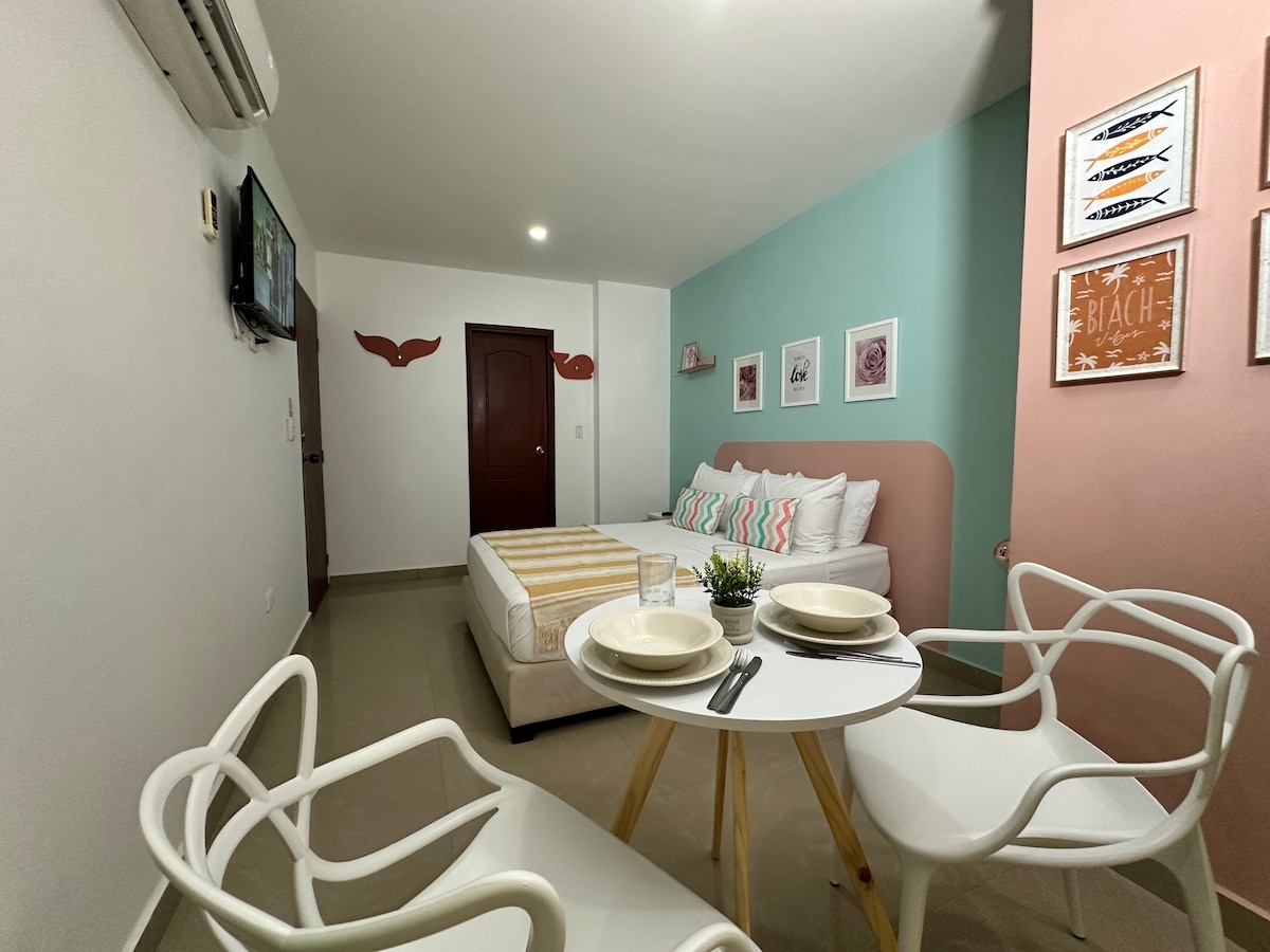 Charming apartment in El Rodadero with access to the beaches of Gaira and Rodadero just 5 minutes away. Enjoy amenities like air conditioning, coworking space, gym, 2 swimming pools in the building, and WiFi. Plus, it has visitor parking. Equipped with everything you need for an unforgettable vacation. Your perfect getaway awaits you! Additionally, receive an additional 10% discount on bookings at Palomino Sunrise hotel for when you want to go to Palomino.