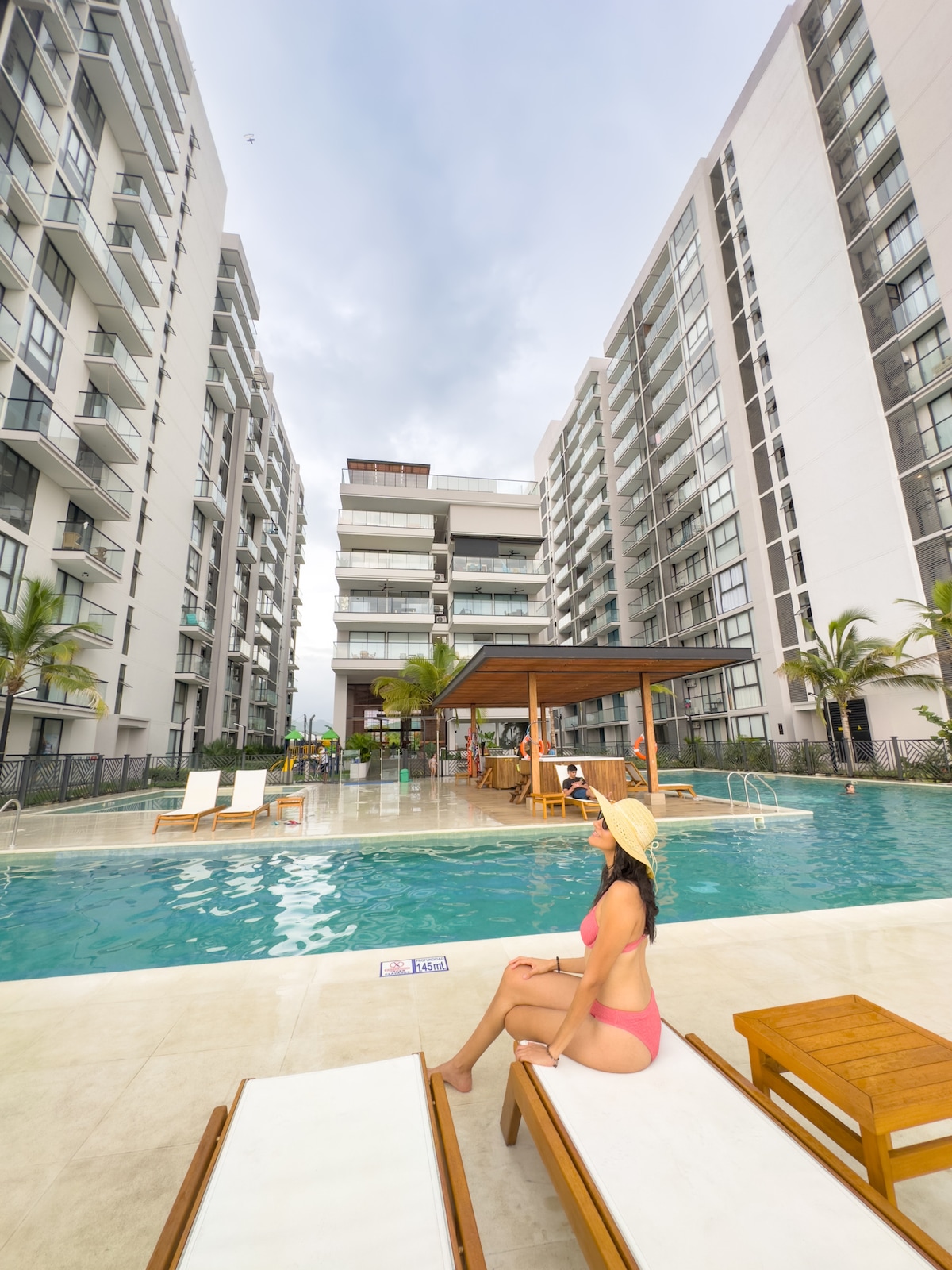 Aparta suite en Porto Horizonte piso 14, hermosa vista donde te relajarás en pareja, podrá disfrutar de un masaje en pareja en este Jacuzzi viendo el atardecer al fondo con el mar caribe de complice. Cama tipo queen con un TV 55’ donde podrás disfrutar tus series favoritas. La suite cuenta con cocina equipada para que puedas preparar un rico desayuno y te tomes un cafe en la mañana. Agua caliente y todo lo necesario para estar tranquilos. El edificio está equipado con una increíble piscina!