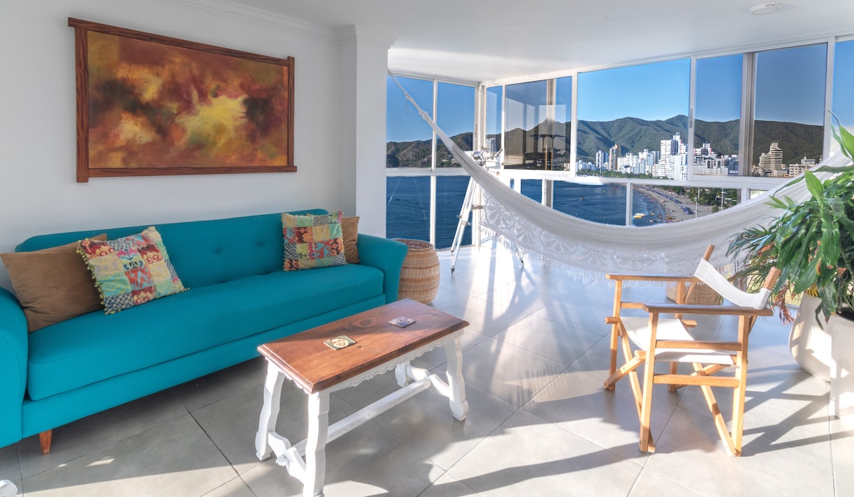 🏖️ Escápate al confort y las mejores vistas de Santa Marta Disfruta de una estadía sofisticada en este acogedor apartamento con balcón privado y una vista espectacular al mar y la marina —el lugar perfecto para ver los atardeceres más bonitos de la ciudad.
