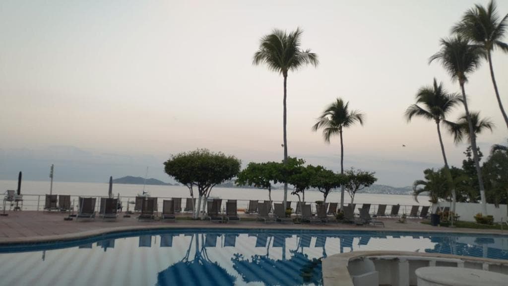¡Reabrimos, te esperamos con mucho gusto! Disfruta nuestra alberca y acceso privado a la playa. ¡Perfecto para vacaciones o home office! Balcón con vista increíble a la bahía. WiFi en el departamento y zonas comunes. Pantalla Smart lista para Netflix, Prime Video, etc. Espacio de trabajo en la habitación para leer o trabajar con tu laptop/tablet. El departamento está en excelentes condiciones. Aunque el condominio está en remodelación por el huracán Otis, todo es funcional.