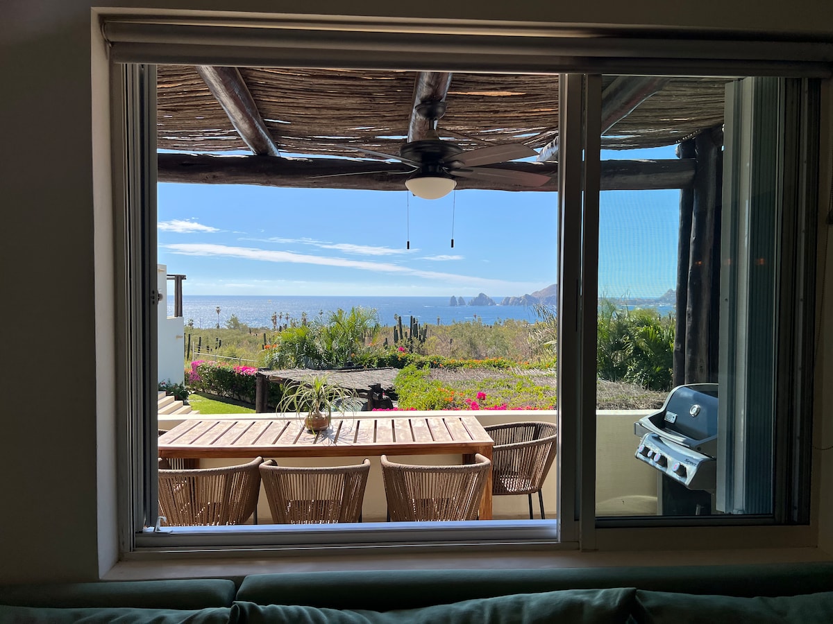 This is a very cute Palapa suite separate from the main house with ocean view over looking Cabo with patio . All restaurant, bars, beaches are a stone throw away . Located in Cabo's cultural center there is no need for a car. California king bed with ensuite bathroom and shower!