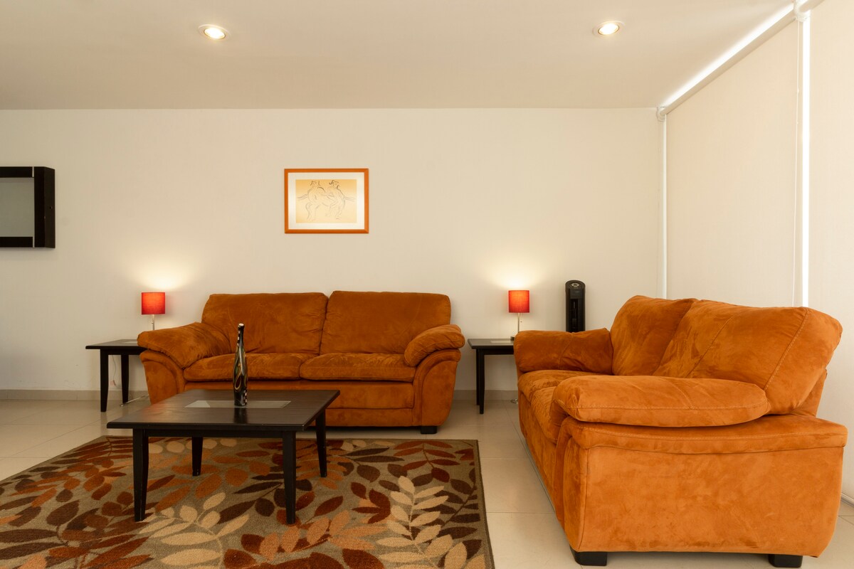 Luminoso, moderno y confortable departamento en dos plantas con excelente ubicación. Ideal para familias con niños, ejecutivos que nos visitan por cuestiones de trabajo, para pasar agradables momentos en pareja o simplemente para quienes buscan un lugar ideal para descansar un fin de semana. Rodeado de centros comerciales (Antea), restaurantes y tiendas; en un entorno totalmente seguro y familiar. Si requieres FACTURA, por favor envíame un mensaje con los datos fiscales correpondientes.