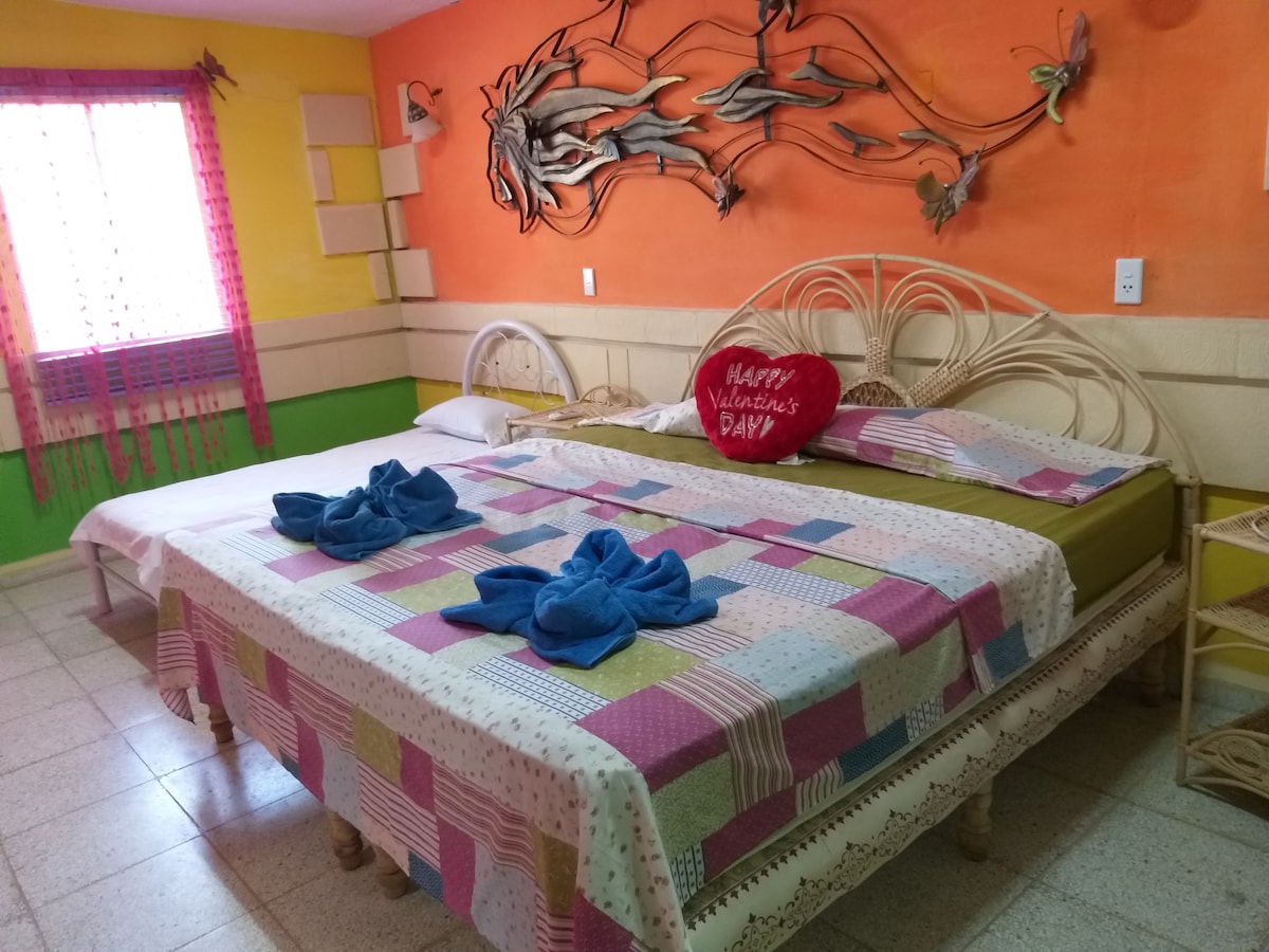 Casa Larabi, Traveler's choice, offers our familial room (Esmeralda), a spacious room decorated colonial style, has its private bathroom and air conditioning (Split), with 3 beds, 2 double and 1 single. Esmeralda is ideal for a couple with children's or a family with 5 persons.