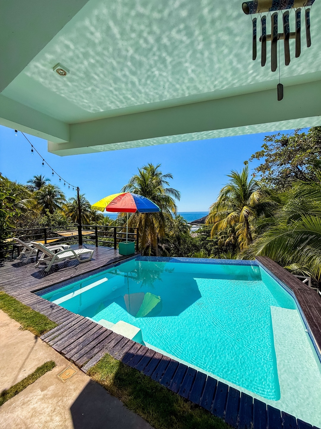 Ivy Marey is an oceanfront villa with a private pool and capacity for up to 10 guests. Located in Surf City, it offers direct access to a wide semi-private beach in Shalpa, within a gated community surrounded by tropical forest. Just 20 minutes from La Libertad and very close to El Zonte, El Sunzal, and El Tunco, it combines privacy with proximity to the area’s main destinations. It features impressive ocean views and a serene, lush environment—ideal for relaxing and unwinding.