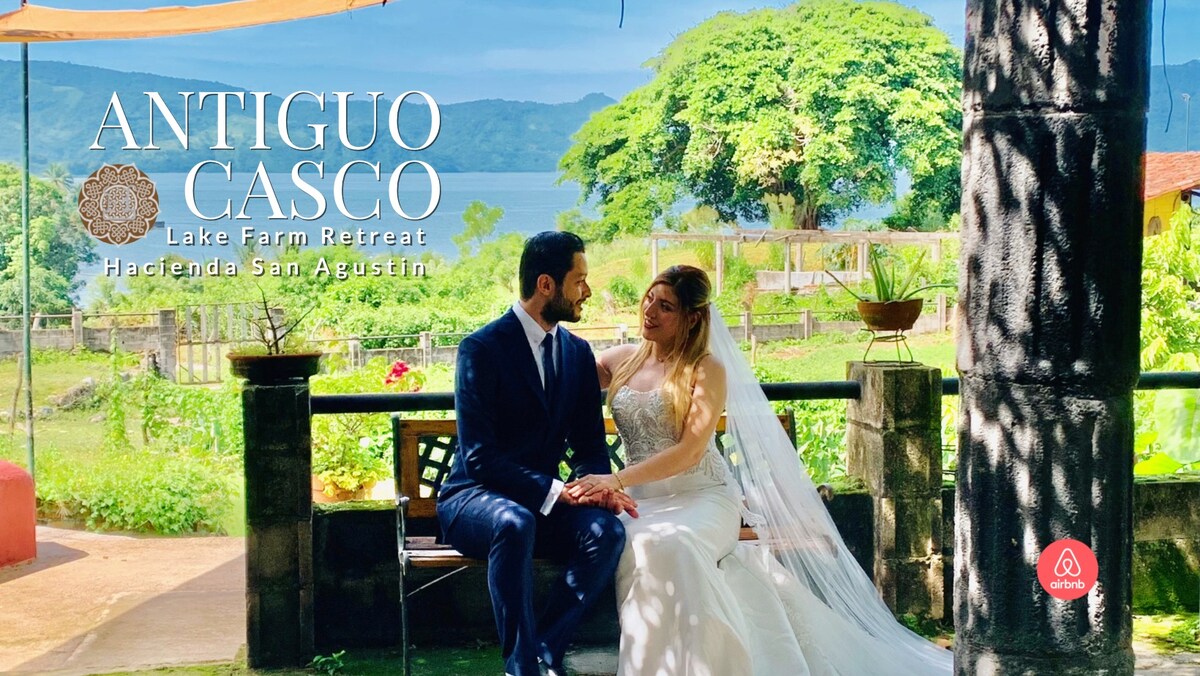 3 renovated rooms, old hacienda farm house and stables, lake access, private forest trail. A) All bedrooms have bathrooms. B) Casco hall: with television, dining area, surrounding balconies and hammocks. C) Daybed, (bajo la veranera Rosa) D) Barbacoa / Barbecue E) Yoga terrace F) Garden sitting areas G) Amate lookout platforms H) Massage services $25/h I) 2 Jacuzzi pools