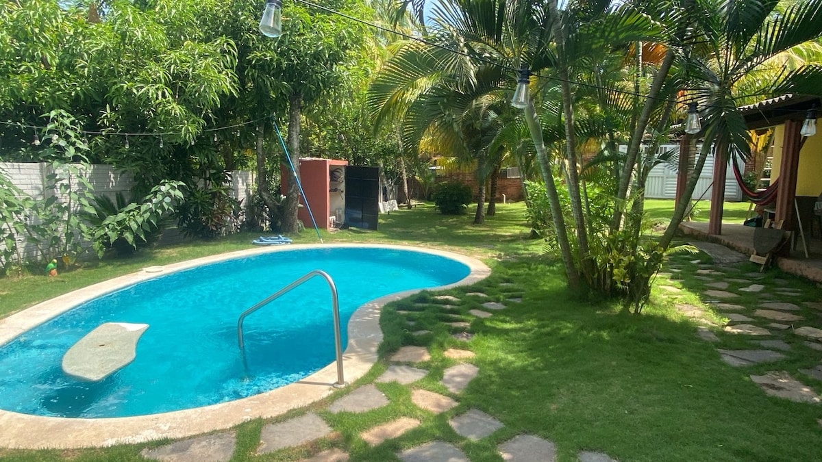 Acogedora cabaña dentro de el Condominio Las Veraneras, con piscina pequeña privada dentro del terreno. La cabaña cuenta con amplia área verde con hamacas y una pequeña barbacoa. El lugar es ideal para una familia o un grupo de amigos. Por favor tomar nota que ya No ofrezco acceso al club de playa de piscinas grandes ni al restaurante. El acceso a la playa es privado, previa identificación, está a dos cuadras y puede llevar sus bebidas a ella. Gracias