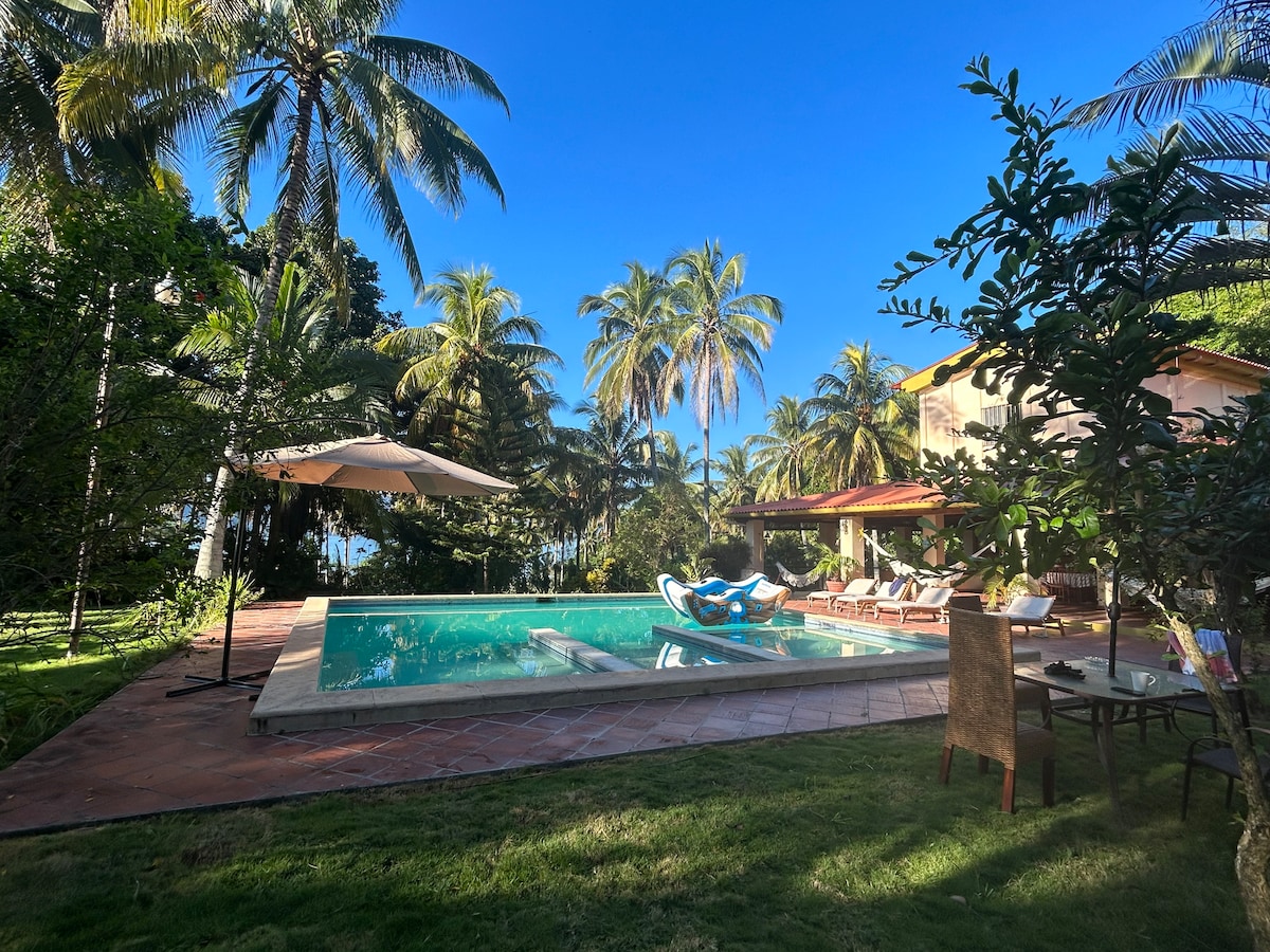 Beach front luxury house amid expansive coconut grove for pure relaxation! Lots of hammocks for relaxing, chemical free pool, miles of empty beach, housekeeping and culinary trained cook included. Attention to every detail make for the most relaxing vacation at this one-of-a-kind home. The Barra de Santiago area is one of the most beautiful in El Salvador, including miles of protected mangroves and a small fishing village. Note: base price for up to 8 guests; enter number of guests for price.