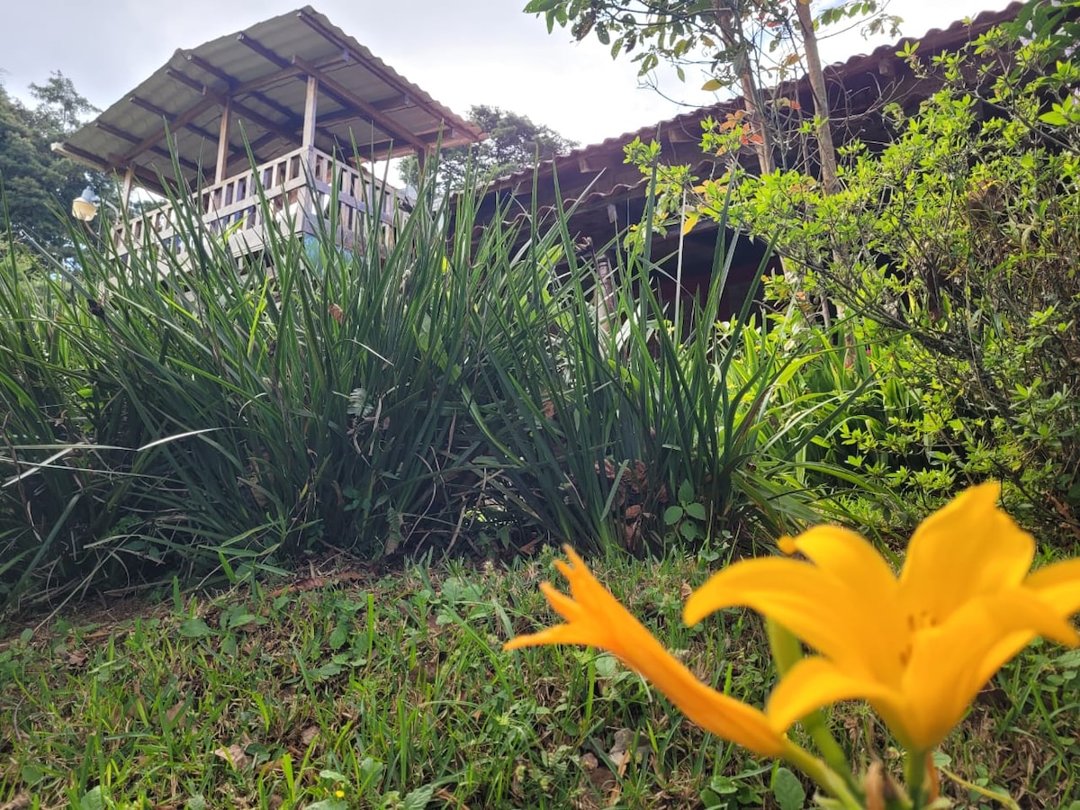 Quinta Milagro de Fatima is a unique rustic cabin surrounded by nature, gardens and a coffee farm. Our estate is next to the road between Ataco and Apaneca making it even more special to be able to visit both places, be away from the crowds; spending your days surrounded by birds of different species flying by every now and then. Waking up to a beautiful sunrise and mountain view. Afternoon surprising fog. At rainy season, the most relaxing rainy sound.
