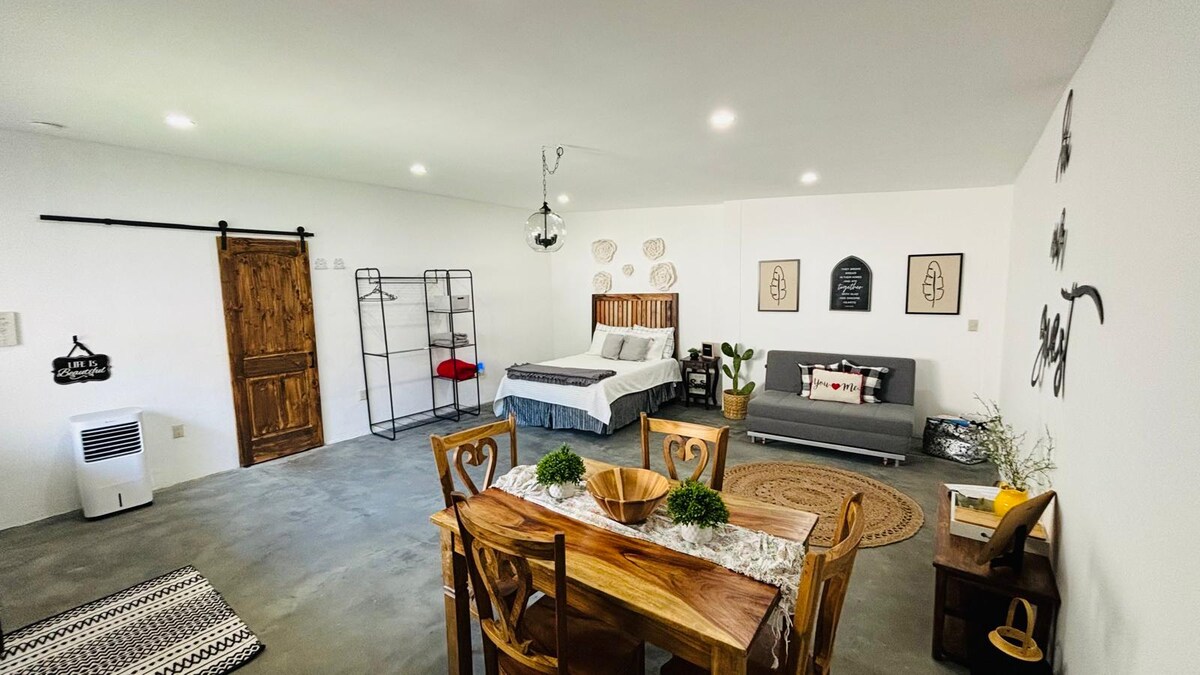 Ubicado en el corazón del volcán de san salvador a solo 20 minutos de la ciudad, este elegante alojamiento es ideal para viajes en familia o entre amigos. Posee un estilo moderno creando un espacio relajante y único por sus comodidades y decoración, podrás apreciar bellos amaneceres y atardeceres rodeado de la tranquilidad de la naturaleza y la vista hacia la ciudad. A 500 mts del restaurante la pampa el volcán y accesible a todos los restaurantes y atracciones de la zona.