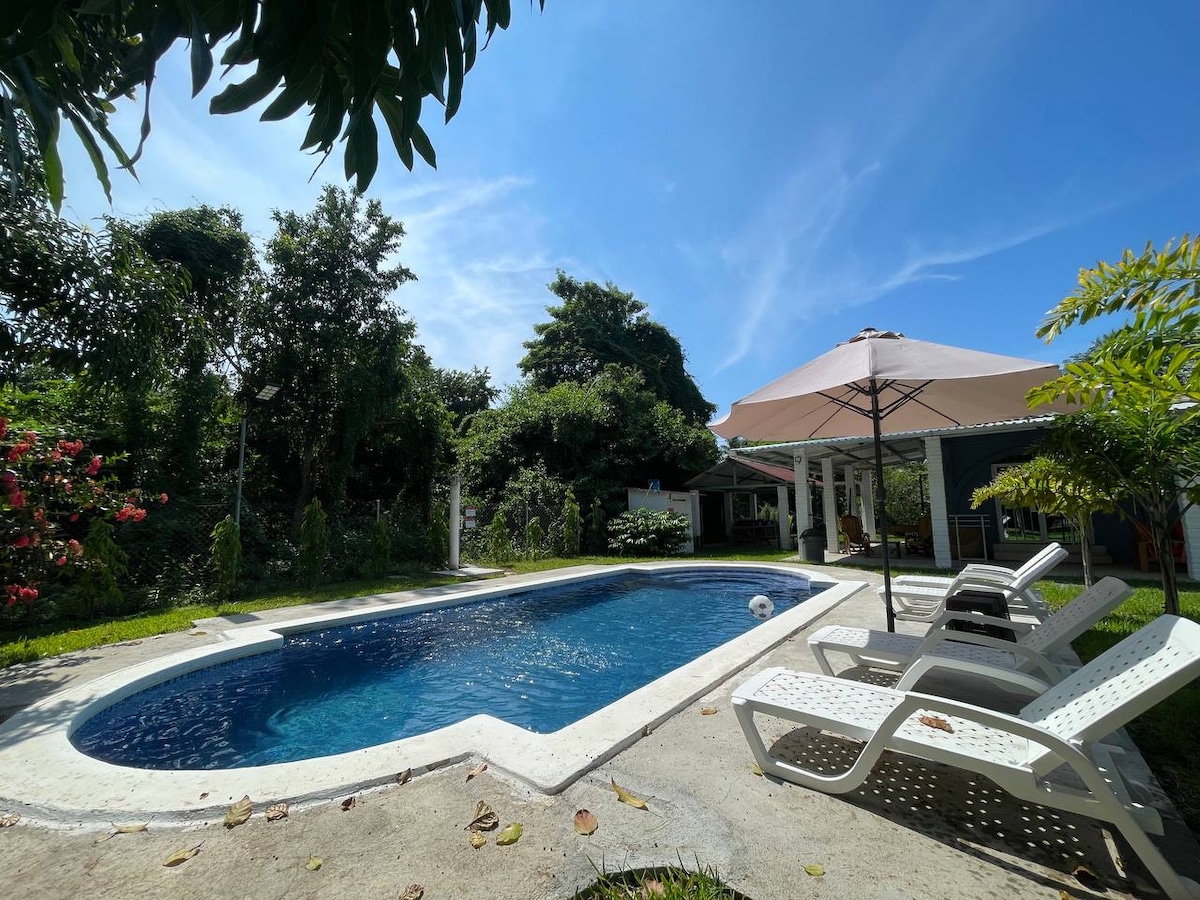 Disfruta de un bello atardecer en la playa Alojamiento familiar en casa cómoda para descansar y salir de la rutina. El rancho cuenta con 2 habitaciones equipadas con aire acondicionado, cocina-comedor con utensilios básicos, un baño completo al interior Zona común: Piscina, 2 duchas en el exterior, zonas verdes, amplio parqueo, cosibo con hamacas y una cocina en el exterior para hacer asados. Estamos al lado de la playa a tan solo 2 minutos caminando por calle comunitaria.
