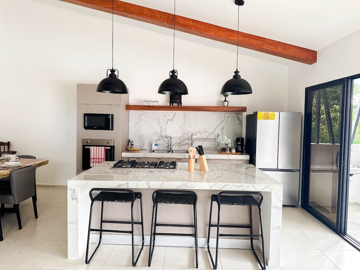 Las Mañanitas is a newly constructed beach villa overlooking the sunrises and the coastal line of the Pacific Ocean. The villa's three bedrooms accommodate up to 8 people. Each bedroom has its own full bathroom and balcony, with an amazing view to the ocean. Living room, dining room and kitchenette all within the same living area, with frontal view to amazing infinity pool. The villa is located inside a gated community with security 24/7. It has direct access to the private beach.