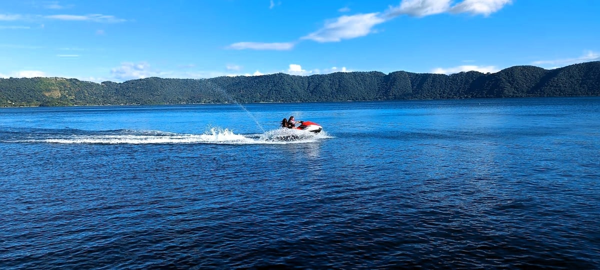 ¡Bienvenidos a nuestra encantadora casa frente al Lago de Coatepeque, El Salvador! Disfruta de impresionantes vistas, ambiente tranquilo y acceso directo al lago. La propiedad cuenta con amplias habitaciones con aire acondicionado, piscina, muelle con bar y comedor frente al agua, jardines y estacionamiento para 8 autos. Ideal para familias, amigos o escapadas románticas. Vive la magia de Coatepeque en un entorno paradisíaco y lleno de naturaleza.