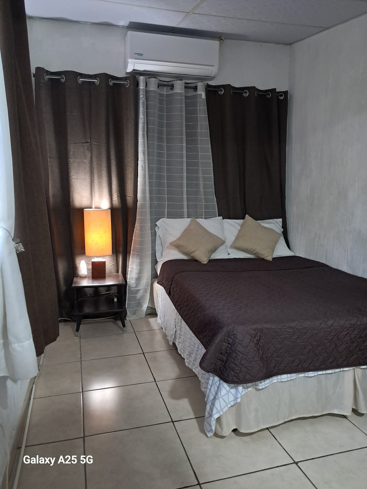 Mini Apartamento: 1 habitación y sala con A/C, Smart-TV- Cable, Wifi 80 mbps, cocina, área de lavado compartida, en zona residencial segura. Se encuentra a 45 minutos del aeropuerto, 5 minutos caminando al Centro Comercial Plaza San Luis, Hospital Militar y 15 minutos en vehículo a Metrocentro. A sus alrededores fácil acceso a restaurantes, supermercados, farmacias, servicios de bus, Universidad Nacional, etc. Disfruta de una linda experiencia en este céntrico alojamiento.