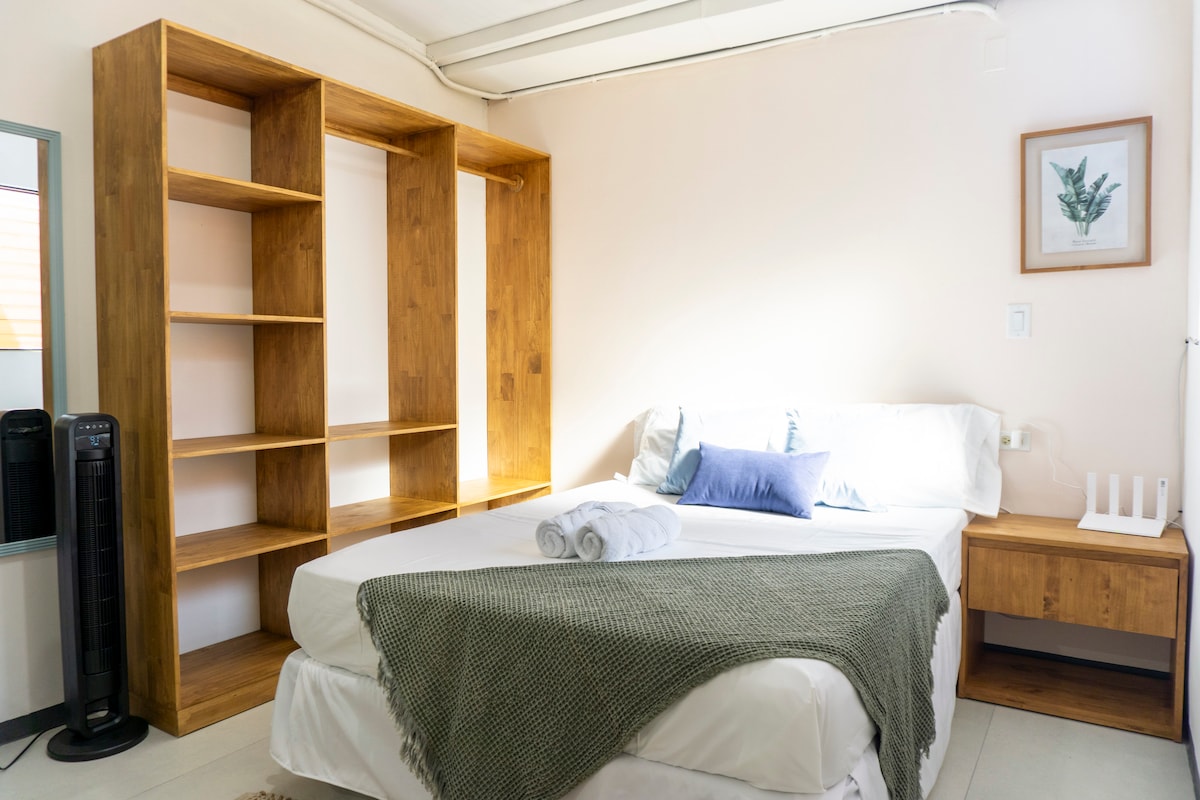 Estudio listo para recibir huéspedes que buscan un lugar cómodo, fresco, en excelente estado. Un estudio pequeño y acogedor, con todo lo necesario para una estancia agradable. Dispone de una cama matrimonial (para 1 ó 2 personas), 2 sillones individuales con ottoman y una KITCHENETTE equipada. Situado en un barrio seguro y tranquilo, cerca de la embajada de EEUU a 5min a pie, del supermercado a 10 min a pie) y de gran número de restaurantes y zonas de recreo para grandes y chicos.
