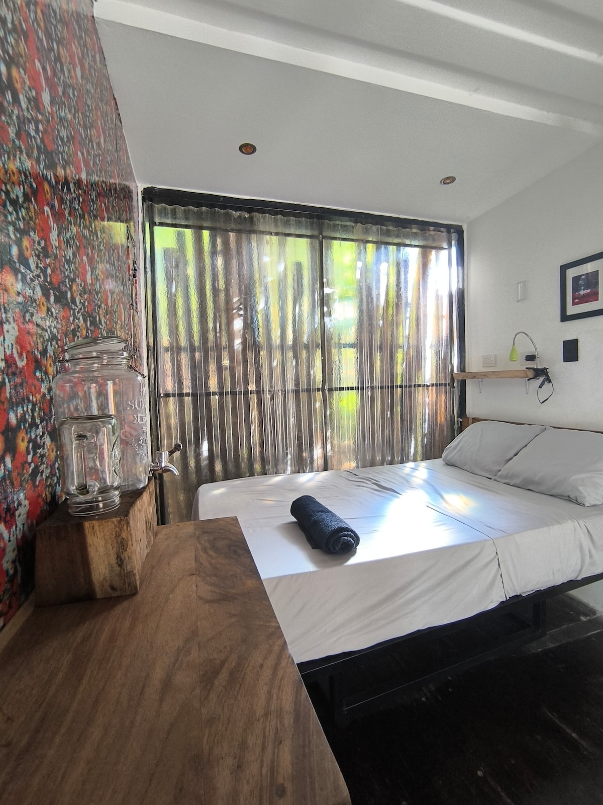Hermosa habitación Container estándar con baño privado y aire acondicionado. Ven a disfrutar y a vivir la experiencia de Casaola Mizata, a pasos de la playa, olas increíbles, desconexión y naturaleza en un solo lugar. Contamos con wifi de alta velocidad, piscina, área de cowork, restaurante, bar, tablas de surf y un equipo que te hará sentir como en casa. Nos encontramos a 1 hora 30 min del aeropuerto de El Salvador y a solo 100 metros de distintos restaurantes, como Nawi Beach Club.