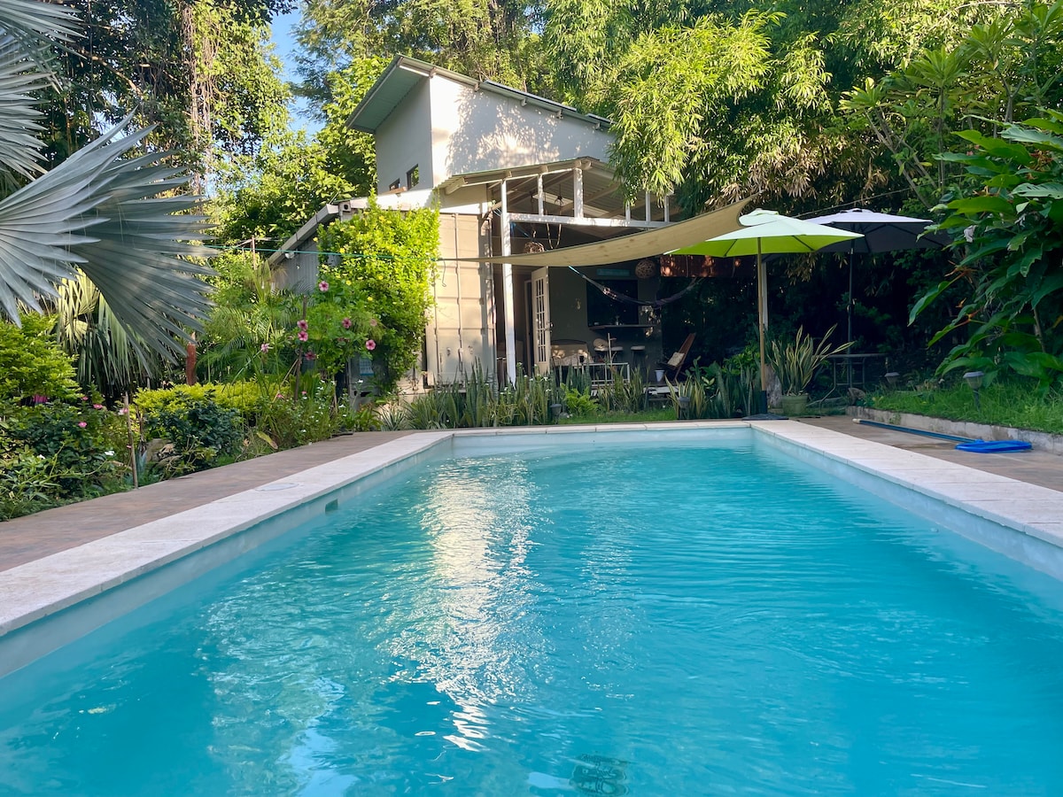 Enjoy the sounds of nature when you stay in this unique place. Reconnect with nature at this unforgettable escape. Steps to the pristine black sand beach. Surf uncrowded waves. Sleeps 2, perfect for individuals or couples. Amenities include swimming pool, outdoor community kitchen, AC, private bathroom. Airport transfers available.