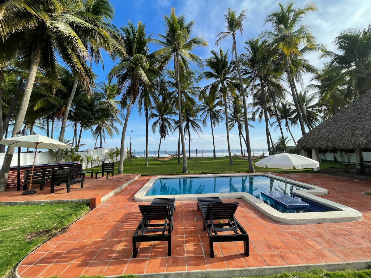 Relax with the whole family at this peaceful Beach Front home. Wake up to a mesmerizing sunrise, then sit by the pool to watch a sunset. Enjoy a fresh coconut and feel the breeze of the ocean as you soak up the sun. Barra de Santiago is uniquely located, only a few minutes from a stunning bocana & surrounded by miles of mangroves. The home is also conveniently not too far from a lovely town with many restaurants and local markets perfect to make home cooked meals in our fully equipped kitchen.