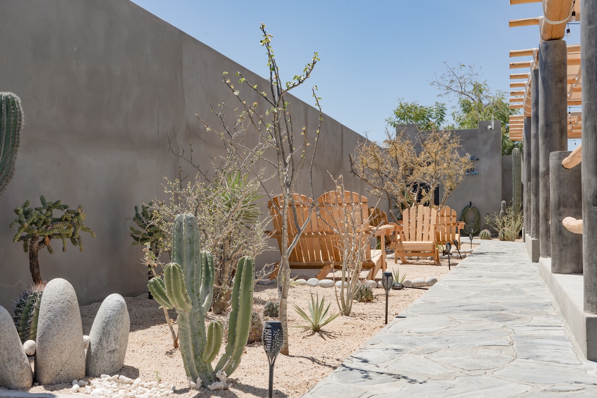 Welcome to Fuego, a 20 m² studio designed to offer both comfort and warmth. The full kitchen, with its fridge, gas stove/oven, and dining bar, is perfect for sharing meals after a day of adventure. Relax on a queen bed designed for luxurious rest, and enjoy the convenience of a private bathroom and easy access to the outdoor shower. With high-speed WiFi, you can work or stream effortlessly, and you're centrally located for beach days, mountain biking, and exploring La Ventana’s nightlife. Fuego