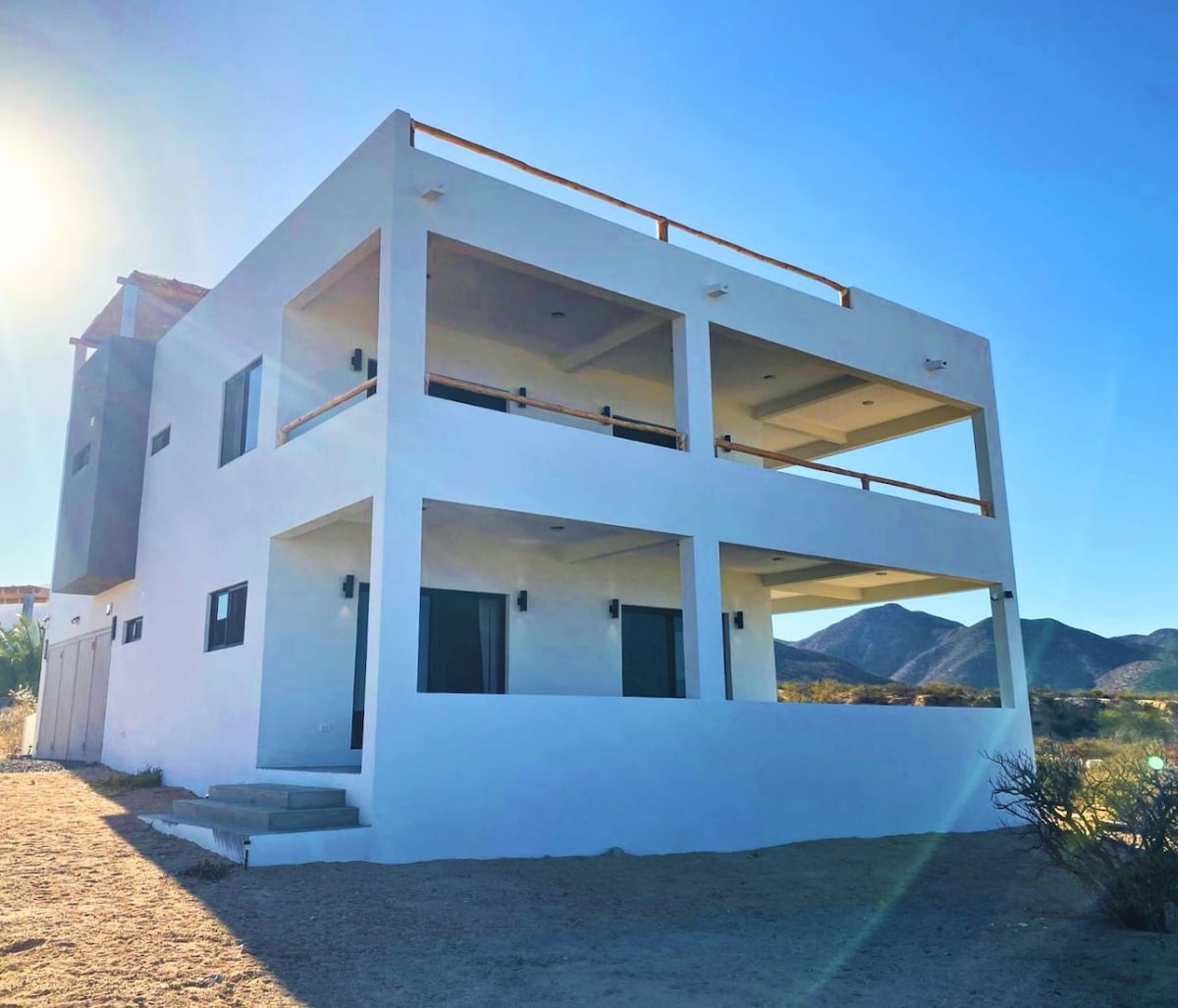 Our 4BR home in El Sargento (3 BR main house and 1 BR Casita) offers breathtaking Sea of Cortez views from its perch atop a bluff. The property extends right down to the beach and includes convenient beachfront gear storage down a meandering private path from the house. The location cannot be beat with easy access to the north trails and the beach. The house also has a newly renovated hot tub on the patio, a brand new hot tub right down on the beach, and a wood fired pizza oven.