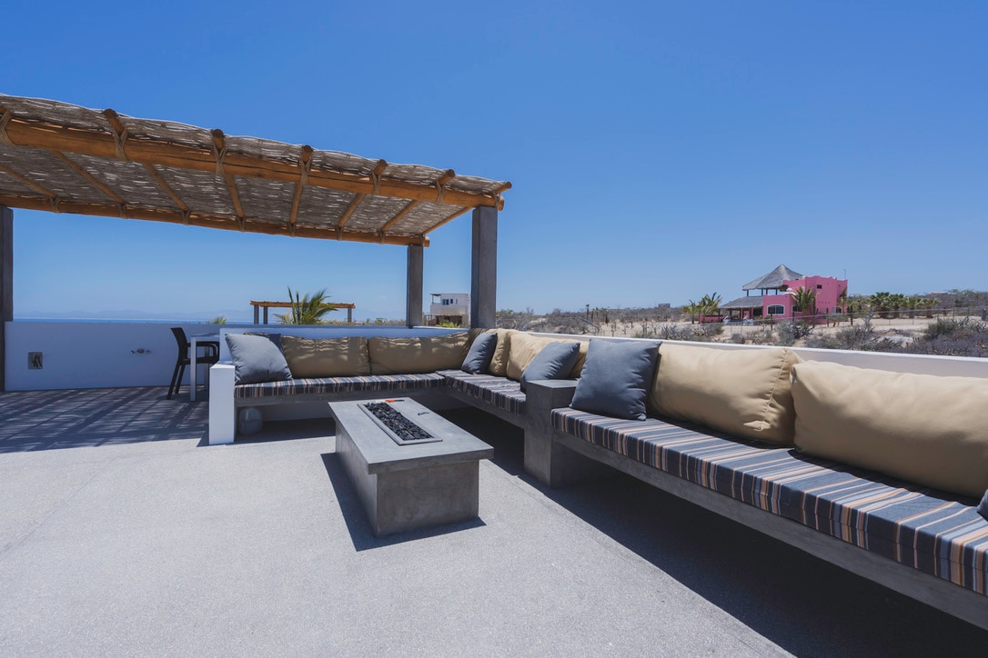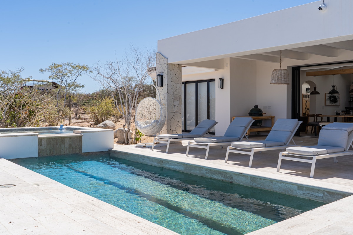 Our 4BR home in El Sargento (3 BR main house and 1 BR Casita) offers breathtaking Sea of Cortez views from its perch atop a bluff. The property extends right down to the beach and includes convenient beachfront gear storage (shared with one other house). The location cannot be beat with easy access to the north trails and the beach. The house also has a newly renovated hot tub on the patio, a brand new hot tub right down on the beach, and a wood fired pizza oven.