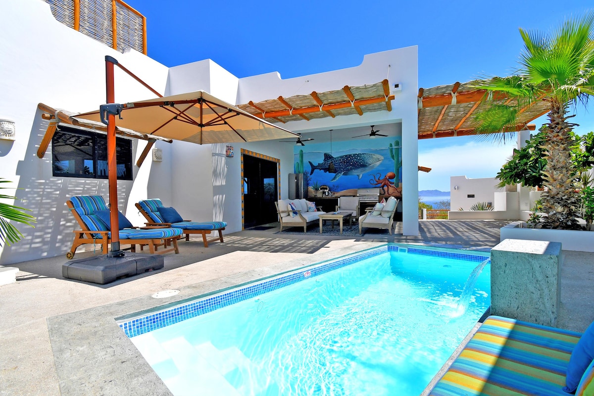 Your eco-chic paradise facing the Sea of Cortez. This sustainable home offers two bedrooms (king and queen), sofa beds, hammocks, and a private pool. It features a full kitchen, workspace, fast Wi-Fi, and a TV. Enjoy a terrace with lounge chairs, a fire pit, a grill, and a kayak. Direct beach access, free parking, and 24/7 security. Experience unique sunsets and responsible comfort: book your coastal escape now! Premium bedding, flexible check-in, and personalized attention to your experience.