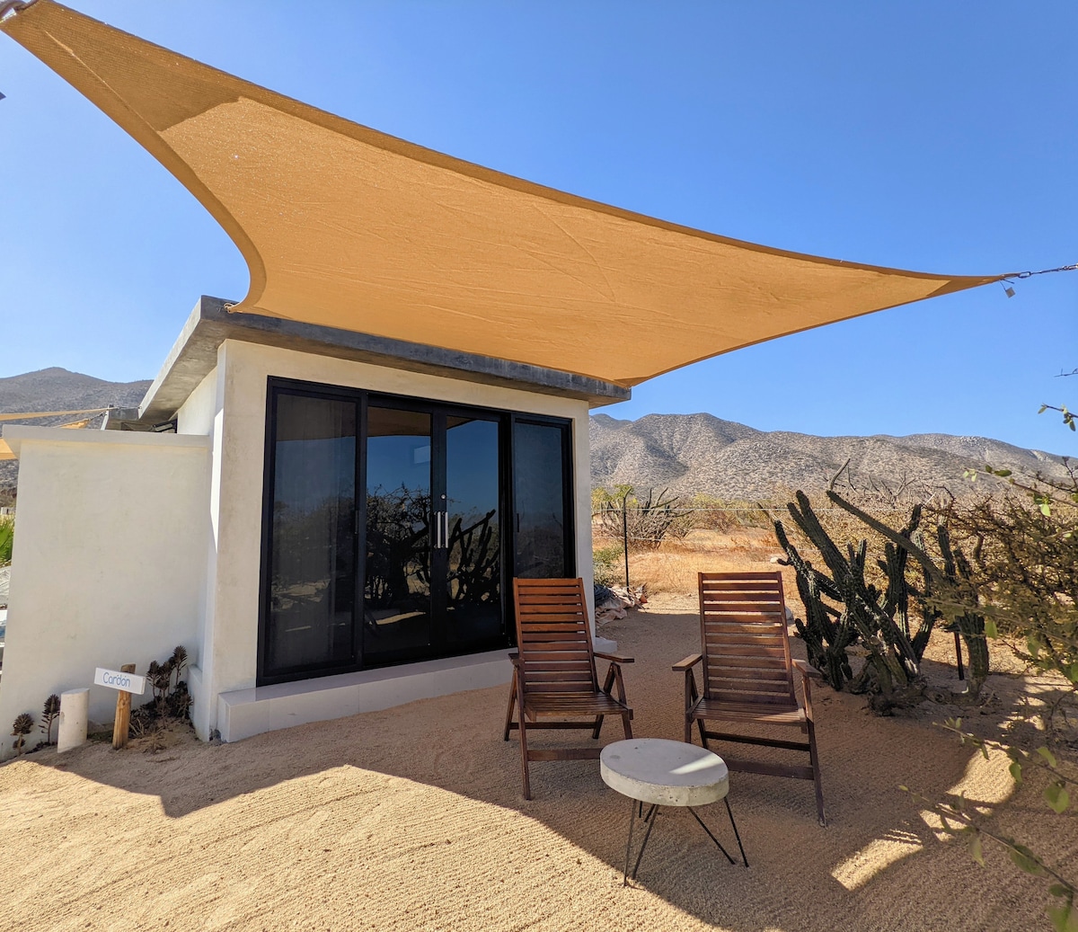 Situated in in the desert 3-4 miles north of town you can definitely relax here! The star-filled sky and waves crashing on shore will comfort you to sleep each night; each Casita has large windows for fantastic views of the ocean,several you can watch the sunrise without getting out of bed! Completely off-grid and eco-friendly we re-use and recycle everything. No crowds and no cars means No noise! the beautiful new Casitas and Glamping tents are just a 3 minute walk to the beach & Hot Springs!