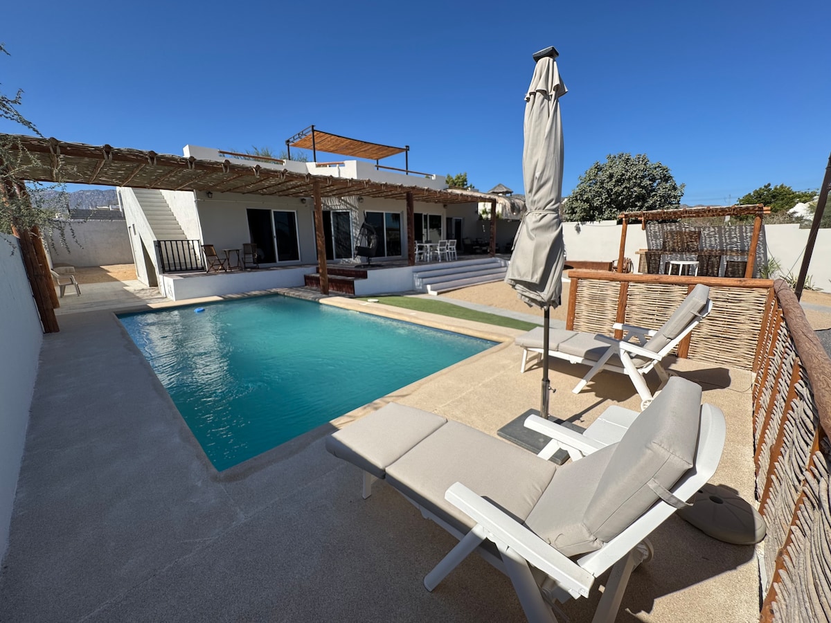 Welcome to Casa de la Brisa, a stylish and modern Mexican retreat just minutes from the water, and perfectly situated in the heart of town. This new 2 bed 2 bath casita is located just steps from shops, cafes, and restaurants. Complete with a rooftop deck to enjoy sunrise/sunset, a fully equipped kitchen, and everything you need for a relaxing stay in La Ventana! This is our own home for part of the year and we have furnished it to be fully functional for both short and long stays!