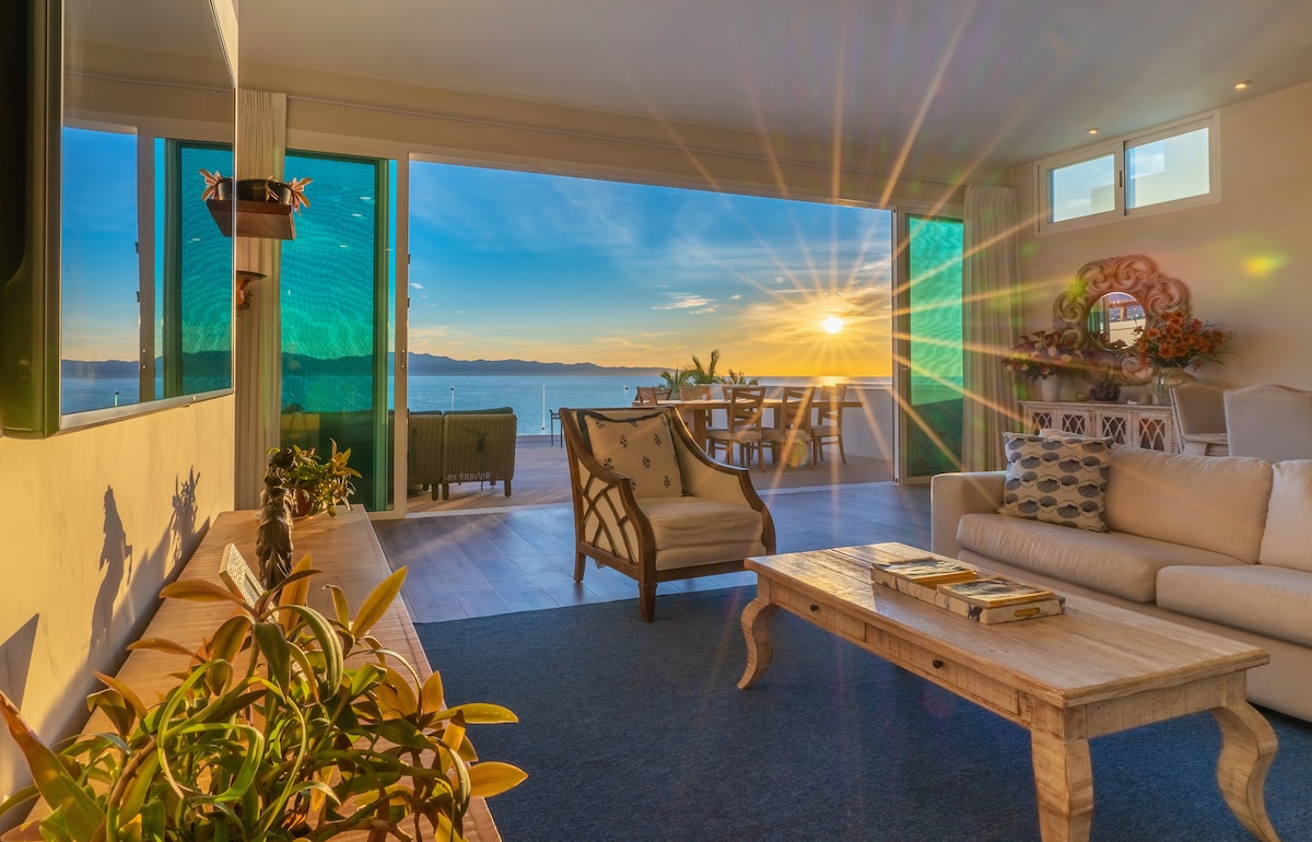“Baja Luna” is sweetly nestled between the mountains and the sea. Wake up to the sunrise over the Sea of Cortez and Jacques Cousteau Island. At dusk, head up to the rooftop deck and watch the sunset light up the Sierra Cacachilas mountains. Before turning in for the night, witness the magical moonrise above the Sea — and the stars twinkling in the dark sky. You'll enjoy two private guesthouses adjoined by a patio & heated pool. The property is ideal for two couples, singles, or small families.
