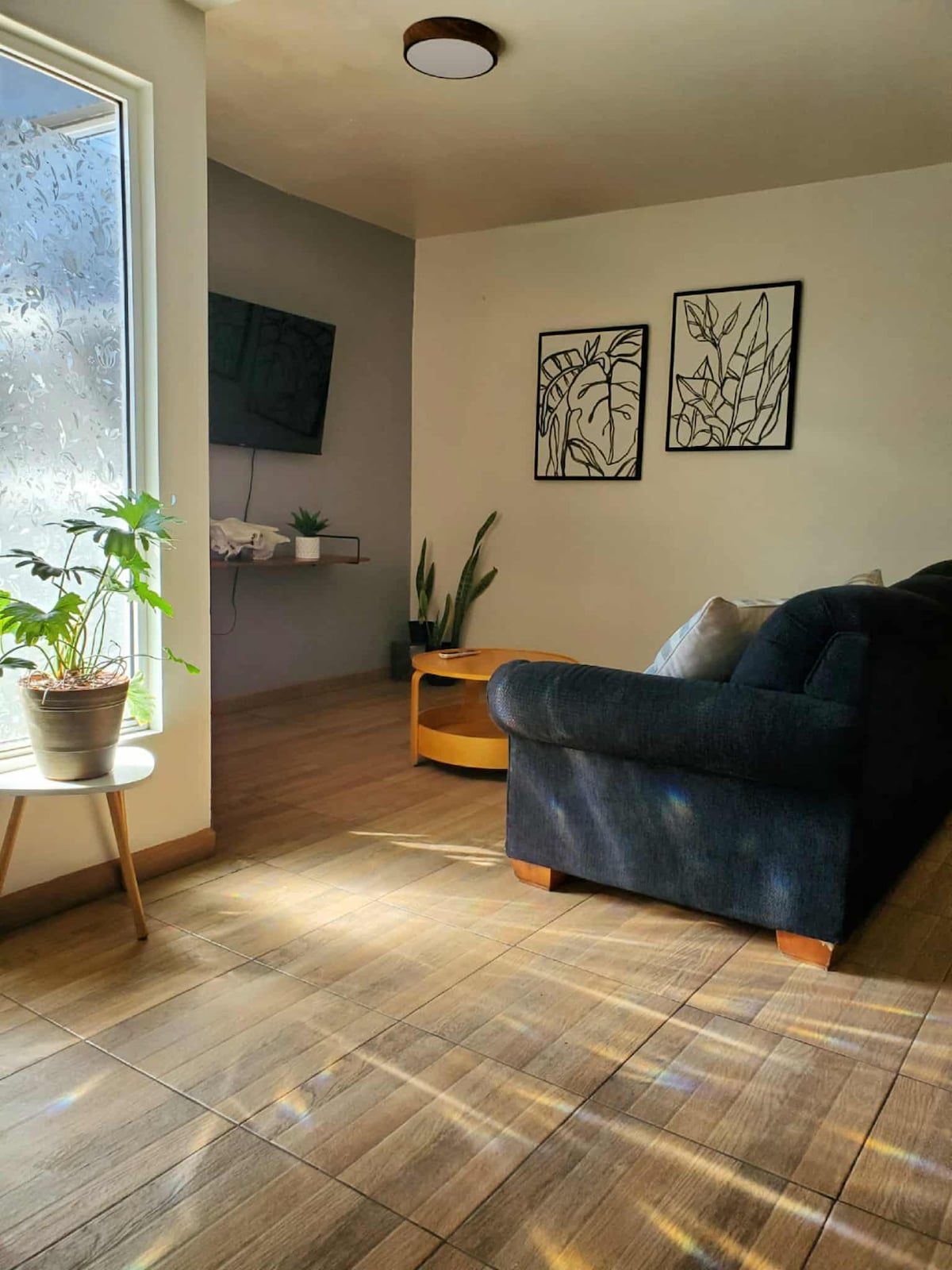 An amazing apartment with luxury ammenities such as smart TV, wifi, a/c private access to back patio, private free parking, 24h external surveillance camera with inside security alarm that can be disable/enable remotly. We are located only 5 min drive to downtown Ensenada and about 15 min drive to the road that leads to the Valle of Guadalupe wineries. It is located in a quiet and secure neighborhood.