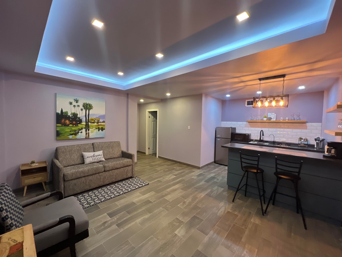 Come and relax in this peaceful stylish space created with love! Enjoy the modern luxurious home with everything you need to feel safe and comfortable. The sunsets are amazing sit outside and enjoy a BBQ with the family. This home has everything u need Smart TV’s in every room, AC, fireplace, BBQ, outside dining, outside couches Washer and dryer, 2 bathrooms full equipped, coffee, full kitchen with everything u need to cook, modern furniture, Couch turns in to a full size bed. You will Love!