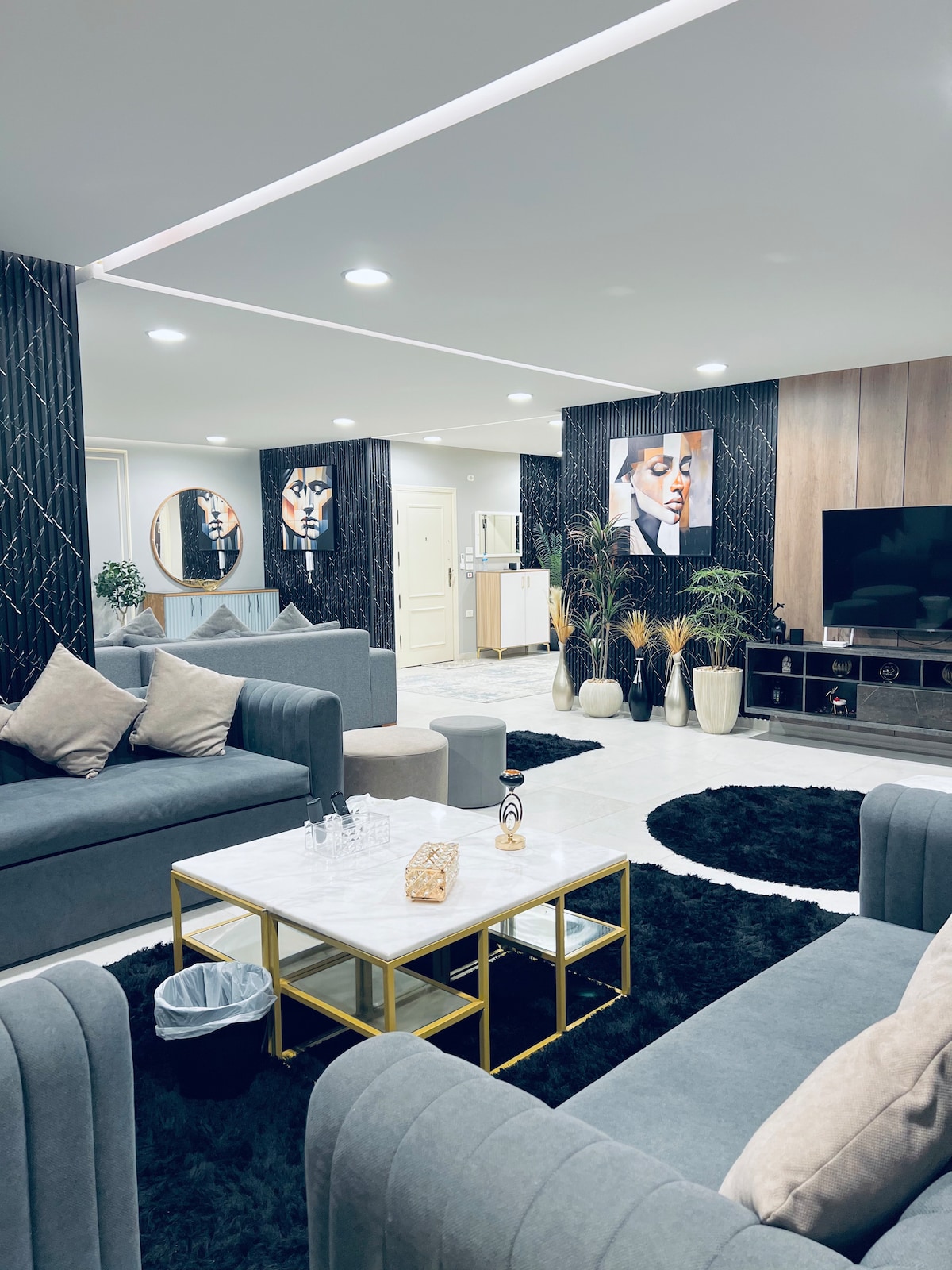 Enjoy a stylish stay in this cozy, high-quality, centrally located 2BR apartment in the best area of Giza — Sheikh Zayed. Located on the first floor with a view of the main street and lush trees, right across from Gate Plaza Mall — home to supermarkets, coffe shops, and restaurants. Easy Uber/taxi access and app-based deliveries make your stay seamless. Fast Wi-Fi, comfy beds, and all essentials included. Your perfect Cairo stay starts here!