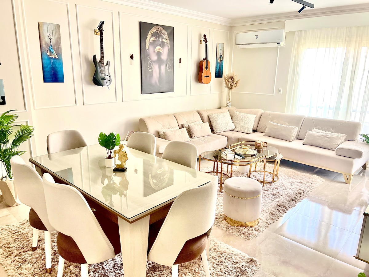 Enjoy a stylish stay in this cozy, high-quality, centrally located 2BR apartment in the best area of Giza — Sheikh Zayed. Located on the first floor with a view of the main street and lush trees, right across from Gate Plaza Mall — home to supermarkets, coffe shops, and restaurants. Easy Uber/taxi access and app-based deliveries make your stay seamless. Fast Wi-Fi, comfy beds, and all essentials included. Your perfect Cairo stay starts here!