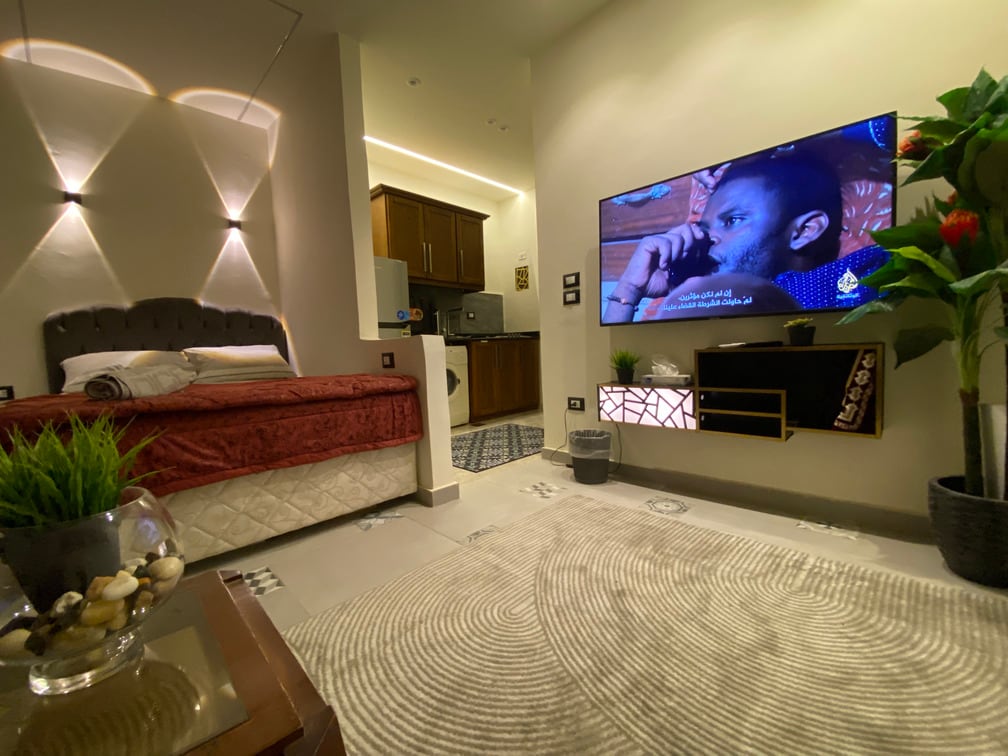 Welcome to our modern 3BR (170 sqm) hotel apartment by West Somid Developments! Designed for families, groups & professionals. Enjoy 5G Wi-Fi, 4 smart TVs, electric shutters & new furniture. 24/7 security, guest lobby, food delivery & optional cleaning. Free weekly cleaning. Guests can also enjoy a shared rooftop lounge — great for movie nights, relaxing evenings & family time. Just minutes from Mall of Arabia & top Zayed spots! ما نقدر نستضيف أي ثنائي عربي غير متزوج في نفس الشقة.