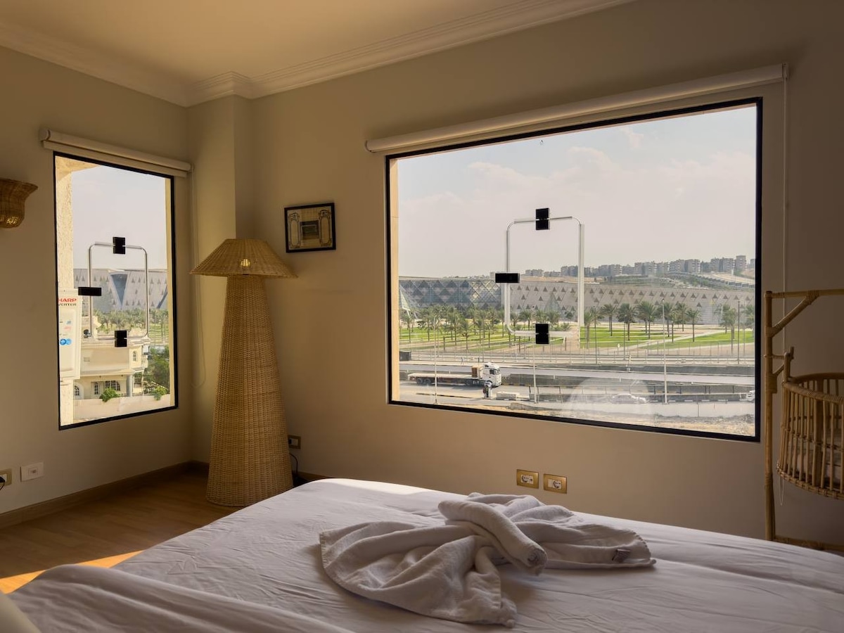 16 mntAn economy option yet cozy, stylish, and hygenic, with two splits AC, well furnished apparment in “ Dream land” 6 october, wahat road, near Mall of Egypt, suitable for one person or couple,no sharing , the rental for entire place , consist of: one bedroom : bed Sizes: Width 160 cm - Depth 200 cm, convenient for two person suitable and comfort for sleeping , bath room and fully equipped kitchen . The Appartment is 20 mnts away from the pyramid and the “ grand museum “ with all facilities