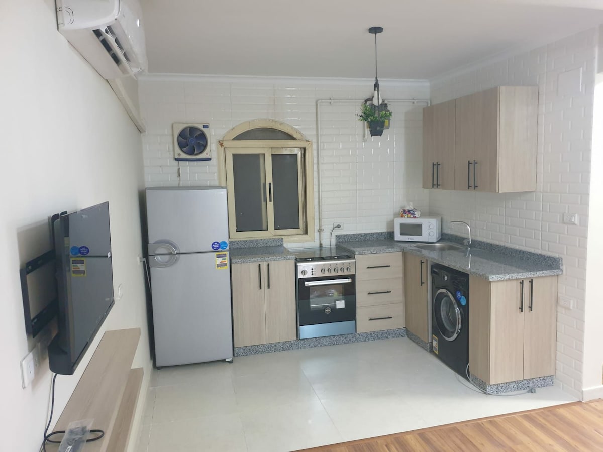 Apartment located in Zayed Dunes, El Sheikh Zayed. A very fresh theme in the heart of El Sheikh Zayed. Complimentary housekeeping is provided on the 7th day for stays of a full week. Additional housekeeping can be arranged via Airbnb messaging for an extra fee. Netflix and free Wi-Fi.