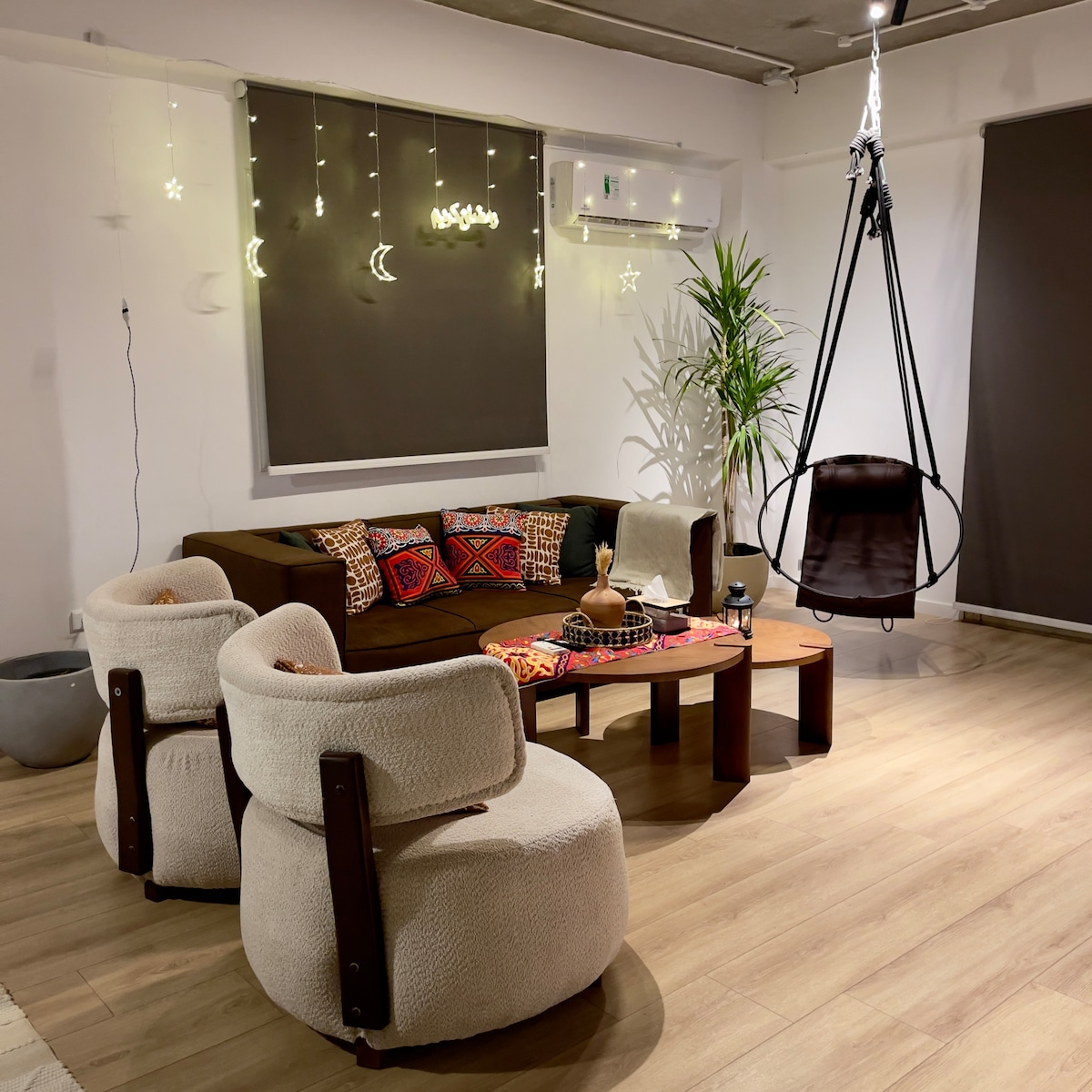 Apartment located in Zayed Dunes, El Sheikh Zayed. A very fresh theme in the heart of El Sheikh Zayed. Complimentary housekeeping is provided on the 7th day for stays of a full week. Additional housekeeping can be arranged via Airbnb messaging for an extra fee. Netflix and free Wi-Fi.
