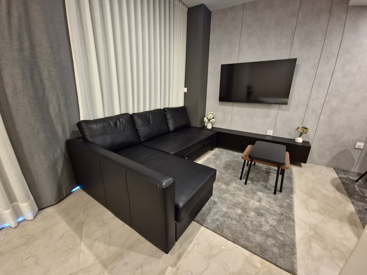 Welcome to our stylish 1-bedroom apartment: Message us for seasonal & special discounts. ●Bedroom (Queen size + sofa bed) ●Living room (smart tv + Couch) ●Dining area for 3 ●Sleek bathroom ●Fully equipped Kitchenette Located in the heart of the city, you'll be moments away from trendy cafés, vibrant nightlife, and top dining spots. ●WaterWay 5A, ●District 5 Marakez ●Uavenues ●The drive ●Katameya ●Garden 8 ●El Malahy ●CFC ●Arabella & many other venues. Contact us for more recommendations.