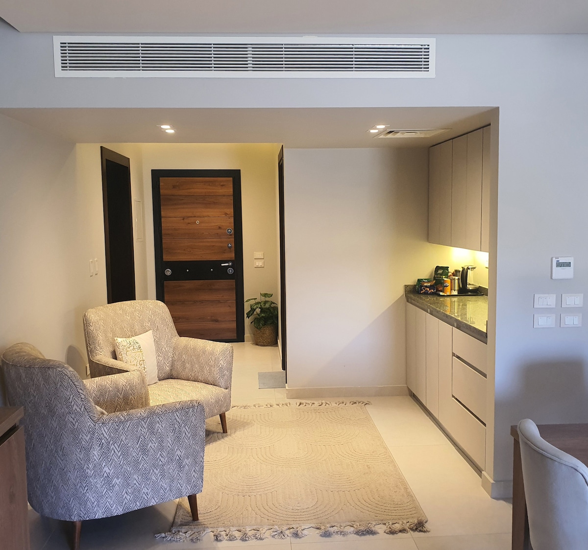 Discover our 1-bedroom gem in Golden Gates Compound—5 mins to Maadi, 10 mins to New Cairo and Nasr City, 15 mins from Cairo Airport and Heliopolis. Fully equipped American kitchen, a stylish mix of modern and boho vibes. Enjoy a garden view, 24/7 security, and on-site amenities like coffee shops, restaurants, Carrefour Hyper Market, and even a hospital. Unwind with a 65-inch smart TV, complete with streaming services, and stay connected with fast Wi-Fi. Your Cairo adventure begins here!