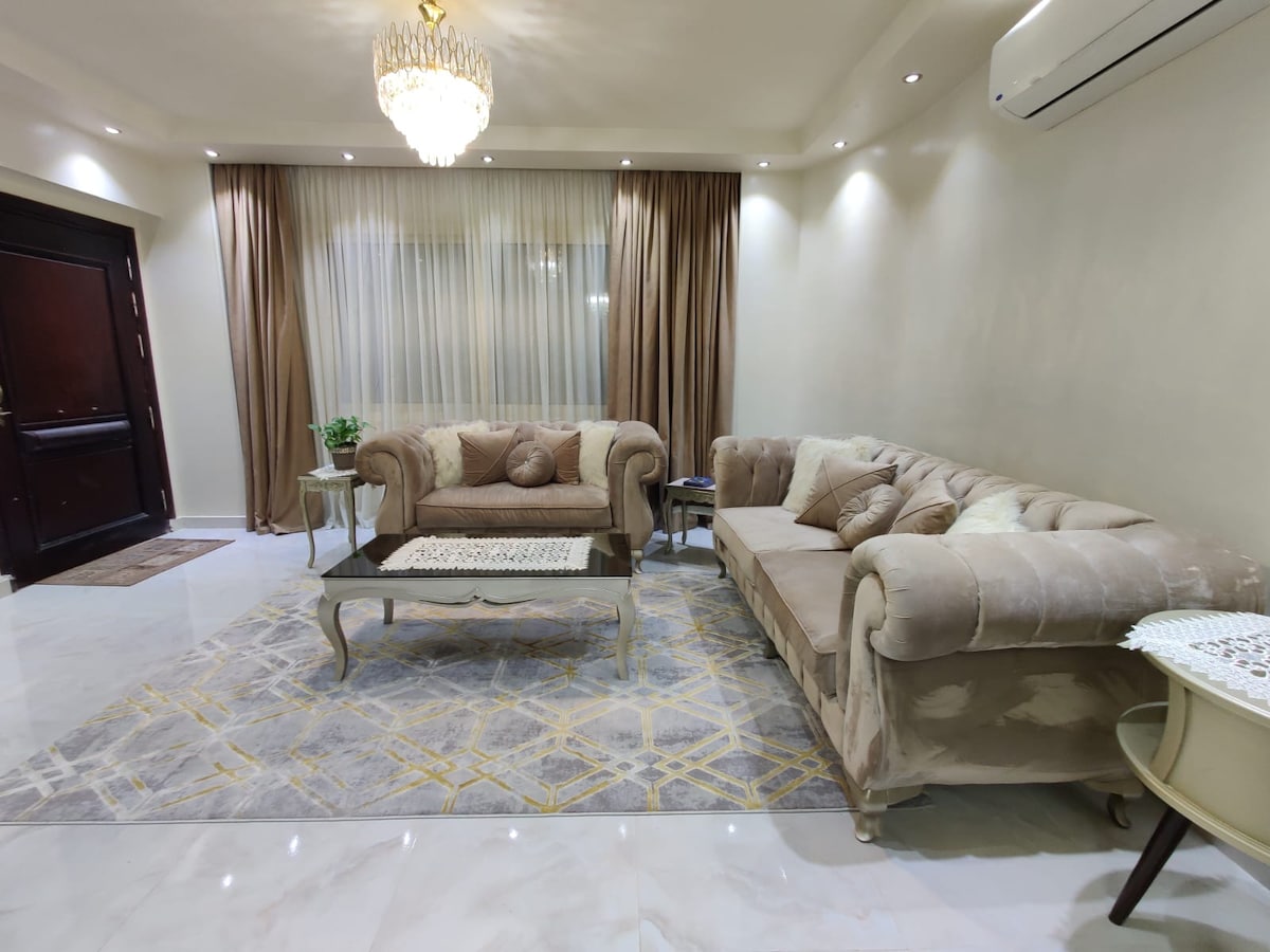 Duplex unit in a gated compound located in the heart of Sheikh Zayed city, completely furnished with all needed equipment and a cosy backyard with a seating area to enjoy the fresh unpolluted air of Sheikh Zayed city. The location is only 25 minutes away from the Pyramids and 10 minutes from Mall of Arabia, Arkan Mall, Galleria Mall and the new Grand Egyptian Museum.