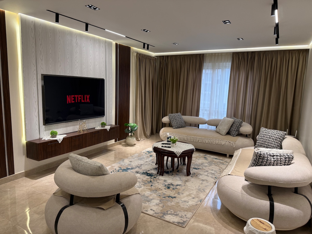 Have fun with the whole family and your lovely friends(Guests ) at this stylish place. Amazing Nile view luxury 3 Master bedrooms Which you can enjoy the sunset view & pyramids. Enjoy a stylish experience at this centrally-located place in new towers , you can enjoy along with your lovely guests feeling the completely comfortable inside the stylish house # 10 minutes from downtown ( Cairo museum and Burj of Cairo ) # 12 minutes from Al Mohandessin # 20 Minutes from pyramids